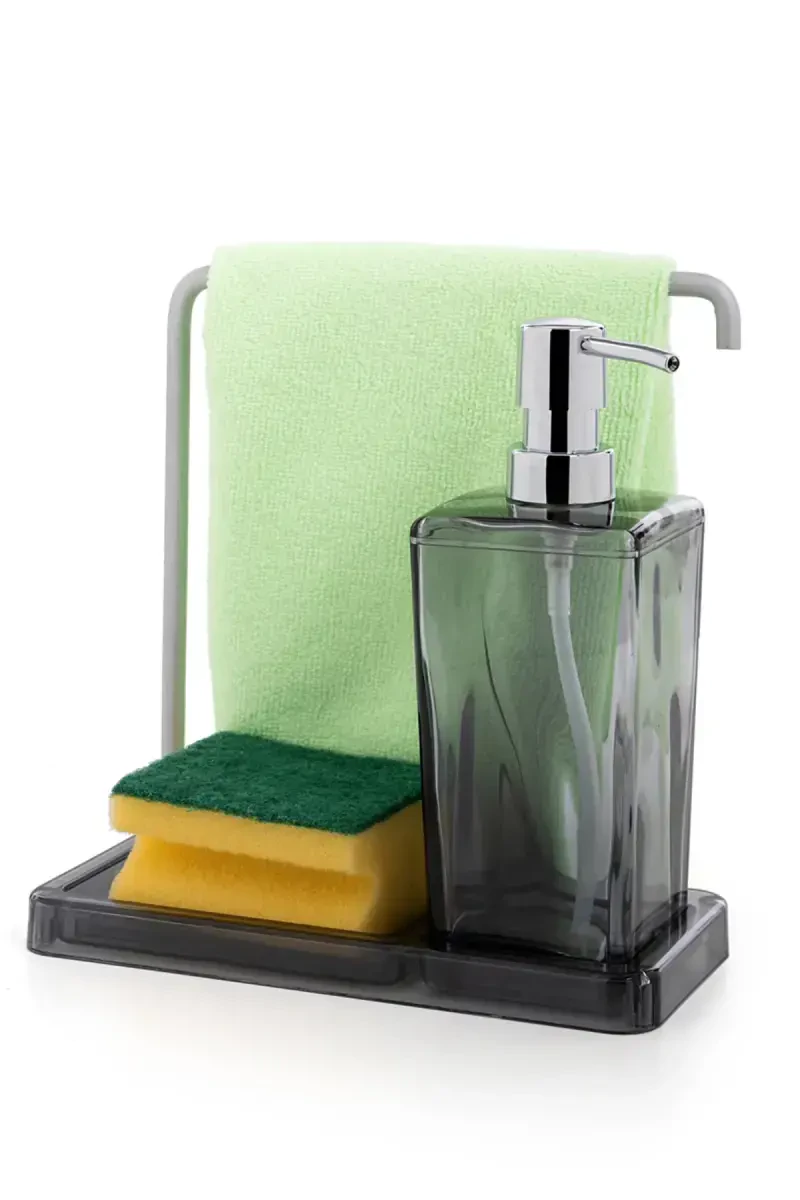 Наш продукт изготовлен из нержавеющего алюминия и долговечен. Благодаря тканевому держателю вы можете гигиенично хранить кухонные полотенца. Дозатор жидкого мыла легко наполнять и чистить. Он обеспечивает стильный вид на вашей кухонной стойке.