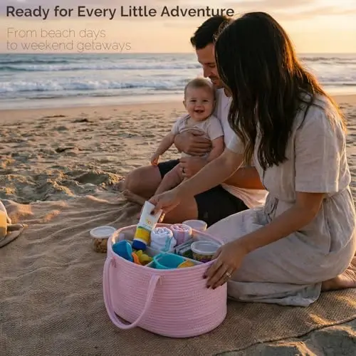 Large Diaper Caddy Organizer: Enjoy easy access to your newborn baby essentials with the large-sized diaper basket from Luxury Little. The caddy organizer measures 15 x 9 x 7 inches and offers ample space to store diapers, bibs, wipes and other essential items for your diaper changing station Removable Divider for Easy Organization: The diaper organizer has 1 removable divider that creates 3 compartments to keep all your baby stuff neatly organized. It has a sturdy layout that stays up even when empty and can be kept on a changing table, on top of a dresser or next to the diaper bin Portable Baby Caddy: The multi-functional basket organizer features long and durable handles. The portable diaper caddy can also be folded for compact storage in your suitcase or backpack when on the move 100% Cotton Rope Basket with Unisex Colors: The diaper organizer caddy is made from premium cotton rope that is skin-friendly and safe for your baby. It comes in unisex colors and is perfect for both baby girls and boys Perfect Gift for Baby Shower: The baby diaper organizer is a thoughtful baby shower and newborn registry gift for new mothers and parents. It can later be used to store books, art supplies, toys, and more once the baby grows up