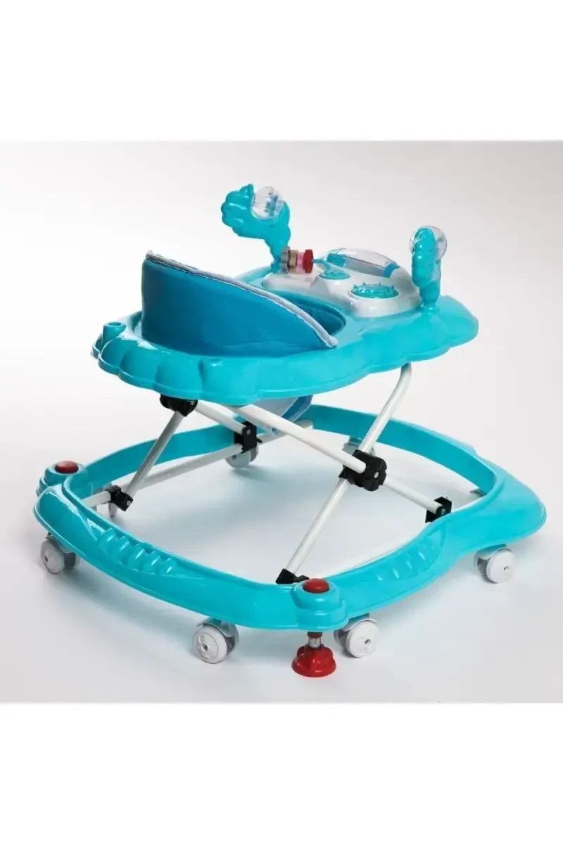 3-level height adjustable. Musical and toy front panel available. The seating area is made of padded fabric. Provides easy movement thanks to its 8 wheels.Product DescriptionMeet the fun and comfortable Luxury Toy Musical 3-Level Spider Baby Walker, which will help your baby take their first steps safely! This eye-catching turquoise walker contributes to your baby's development while prioritizing their safety. The walker supports your baby's walking skills by strengthening their muscles, while also providing them with the opportunity to explore and learn. Thanks to its three different height settings, it can be easily adjusted according to your baby's height, allowing them to always be in the correct and comfortable position. The padded seat ensures that your baby is comfortable even during long-term use. The musical and toy front panel attracts your baby's attention and helps them have a fun time. The toys on this panel contribute to the development of your baby's hand-eye coordination and enrich their sensory perception. Thanks to its 8 wheels, the walker can move easily on the floor of your home. These wheels allow your baby to roam freely and explore their surroundings. The Luxury Toy Musical 3-Level Spider Baby Walker supports your baby's development while providing great convenience for parents. It is a long-lasting product with its practical use and sturdy construction. It is an ideal choice to help your baby take their first steps safely and have a pleasant time. The vibrancy of the turquoise color and the features offered by the walker will appeal to both your baby and you. Accompany your baby's journey of discovering the world with the Luxury Toy Musical 3-Level Spider Baby Walker!Product Features* 3-level height adjustable.* Musical and toy front panel available.* The seating area is made of padded fabric.* Provides easy movement thanks to its 8 wheels.* Stylish design with turquoise color option.* Supports your baby's development.* Improves hand-eye coordination.* Enriches sensory perception.* Has a safe and robust structure.* Offers practical and easy use.Additional InformationThe product can be cleaned with a damp cloth. The walker should always be used under supervision for your baby's safety. The weight carrying capacity of the walker is a maximum of [value to be specified] kg. Batteries are required for the product's music and toy functions (batteries not included). Read the user manual carefully.