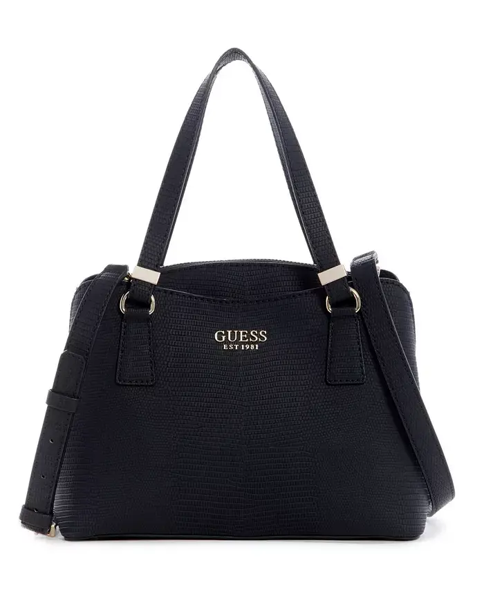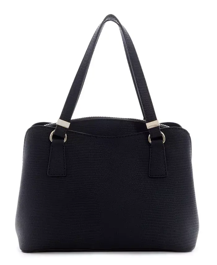 GUESS Lyndi Small Triple Compartment Girlfriend Satchel - Siyah, şıklığı ve kullanışlılığı bir araya getiren, modern kadının vazgeçilmez aksesuarı olmaya aday bir çanta. Günlük kullanımınızdan özel davetlerinize kadar her ortamda size eşlik edecek bu zarif tasarım, hem stilinizi tamamlayacak hem de eşyalarınızı düzenli bir şekilde taşımanıza olanak sağlayacak. Yüksek kaliteli suni deri PVC malzemeden üretilmiş olan bu çanta, uzun ömürlü kullanım sunarken, şıklığından da ödün vermiyor. Lyndi Satchel, 10.5" genişliği, 8.75" yüksekliği ve 4.5" derinliği ile ideal boyutlara sahip. İç hacminin kullanışlılığı, üç bölmeli yapısıyla bir adım öne çıkıyor. Özellikle orta bölmede bulunan fermuarlı kısım, değerli eşyalarınızı güvenle saklamanız için tasarlanmıştır. Çantanın iç kısmında bulunan 1 adet fermuarlı cep ve 3 adet açık cep, telefonunuzdan anahtarlığınıza, makyaj malzemelerinizden kartlarınıza kadar her şeyi organize etmenize yardımcı olur. 6" uzunluğundaki taşıma sapı sayesinde elde rahatlıkla taşınabilirken, 22.75" uzunluğundaki çıkarılabilir askısı sayesinde omzunuzda veya çapraz olarak da kullanabilirsiniz. Soluk parlak altın rengindeki metal aksesuarlar, çantanın tasarımına sofistike bir dokunuş katarken, ayaklı taban yapısı çantanın dik durmasını ve yüzeylerle temasını engelleyerek daha uzun ömürlü olmasını sağlar. Manyetik çıtçıtlı kapama sistemi, çantanın kolayca açılıp kapanmasını sağlarken, eşyalarınızın güvenliğini de garanti eder. 2.06 lbs ağırlığıyla taşıması oldukça kolay olan Lyndi Satchel, tüm telefon modellerine ve hatta bir iPad'e bile rahatlıkla sığabilecek genişliktedir. İster iş toplantısına giderken, ister arkadaşlarınızla buluşurken, isterse de özel bir akşam yemeğine katılırken, GUESS Lyndi Small Triple Compartment Girlfriend Satchel - Siyah, stilinizi tamamlayacak ve size her zaman eşlik edecek mükemmel bir seçimdir.