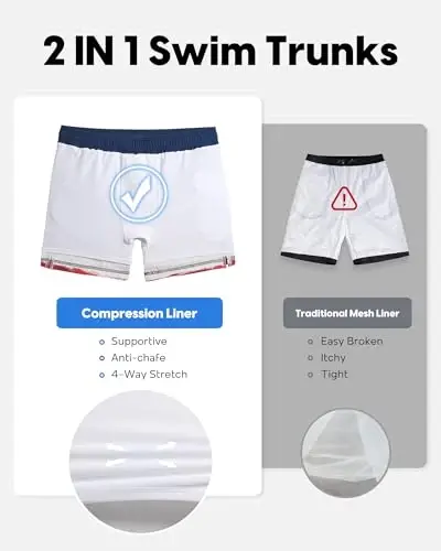 Erkaklar uchun suzish shorti: Tez quriydigan, 2si 1da plyaj shorti