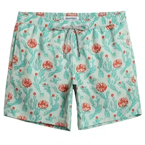 Enjoy the summer with Maamgic Men's Slim Fit Swim Shorts! These stylish and functional swim shorts are designed to make you feel comfortable and free both at the pool and on the beach. With its ideal length of 7 inches, it offers a modern look, while its slim fit cut that does not restrict your movements draws attention. Thanks to its high-quality material and careful workmanship, it promises long-lasting use.Maamgic swim shorts not only look stylish, but also stand out with their practical features. Thanks to its quick-drying feature, it dries in a short time after leaving the water, providing you with comfort. Thanks to its elastic waistband and adjustable drawstring design, it fits your waist perfectly and offers comfort all day long. Whether you swim, sunbathe or play beach volleyball, Maamgic swim shorts will accompany you in every activity.One of the most remarkable features of these swim shorts is their practical pockets. Thanks to its two side pockets and Velcro pocket with drainage holes on the back, you can safely carry your phone, keys or other small items. The drainage hole ensures that your belongings in your pocket dry faster, increasing your comfort. The soft and comfortable mesh lining inside provides extra support and increases your freedom of movement.Maamgic has always focused on offering its customers the most fashionable and comfortable swim shorts. These men's swim shorts can be a perfect gift for yourself, your boyfriend, husband, son, father or loved ones. It is an ideal choice for men who want to experience style and comfort together on the beach, at the pool or in daily life. Enjoy the summer with Maamgic!