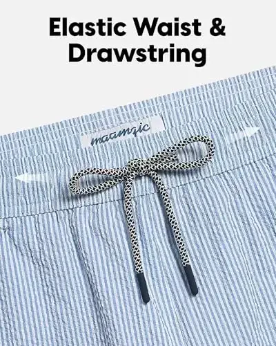 Enjoy the summer with Maamgic Men's Swim Trunks! These 5.5-inch seersucker fabric, 2-in-1 beach shorts offer unmatched comfort and functionality with quick-drying properties and a compression inner lining. Its special design keeps you cool in hot weather, helps you maintain your style, and does not restrict your freedom of movement. Maamgic Men's Swim Trunks are the perfect choice not only for swimming but also for everyday wear and sports activities. Thanks to high-quality materials and careful workmanship, it offers a long-lasting usage experience. The unique seersucker fabric optimizes airflow, allowing your skin to breathe and quickly wicking away moisture. This way, you feel comfortable and refreshed all day long. The adjustable elastic waistband provides a comfortable fit for every body type, while zippered pockets allow you to safely store your valuables. The compression lining on the inside prevents friction and provides extra support. Experience style and comfort together at the beach, pool, or in your daily activities with Maamgic Men's Swim Trunks. These shorts are a practical and stylish solution that meets the needs of the modern man. This product, which will be an indispensable part of your wardrobe, will accompany you throughout the summer. Meet Maamgic quality and feel the difference!