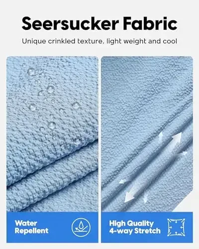 maamgic Men's Swim Trunks 5.5 inch Seersucker Beach Shorts Quick Dry Swimsuit with Mesh Lining* 100% Polyester* Drawstring closure* Machine Wash* High Quality Material: These men's swim shorts are made of high quality 100% polyester fabric, which is lightweight, quick-drying and comfortable.* Adjustable Drawstring: Elastic waistband is equipped with a drawstring, which makes this men's beach shorts fit your waist tightly.* Mesh Lining and Pockets: Built-in mesh lining offers you support and comfort during water sports. Two side pockets are convenient for you to carry your phone, keys or other small items.* 5.5 inch Inseam: These men's swim trunks with 5.5 inch inseam provide perfect freedom of movement for your active days.* Occasions: These men's swimming shorts are perfect for swimming, surfing, sunbathing on the beach, running, volleyball, pool party and other water activities.