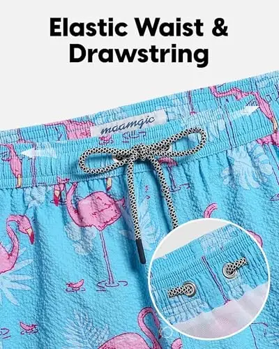 Enjoy the summer with Maamgic Men's Swim Trunks! These stylish and functional swim shorts are designed to accompany you on the beach, by the pool, or in your daily activities. With an ideal length of 5.5 inches, they offer both comfort and freedom of movement, while the unique texture of the seersucker fabric allows you to stand out. Made from high-quality materials, these shorts promise long-lasting use and superior performance. Thanks to the breathability of the seersucker fabric, you will stay cool and comfortable even in hot weather. The elastic waistband and adjustable drawstring provide a perfect fit to your waist, offering all-day comfort. With convenient pockets, you can safely carry your belongings, and the mesh liner provides extra support and ease of movement. Maamgic Men's Swim Trunks are not just swim shorts, but also a lifestyle choice that reflects your style. Whether you're swimming in the sea, sunbathing on the beach, or doing your daily activities, these shorts will always accompany you. The quick-drying feature ensures a comfortable experience by drying quickly after you get out of the water. Enjoy the summer with Maamgic Men's Swim Trunks!