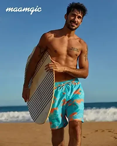 Enjoy the water and the sun with Maamgic Men's Swim Shorts! With its quick-drying feature, comfortable inner mesh lining, and stylish design, these shorts will accompany you in every moment, from the swimming pool to the beach, from the gym to daily use. Maamgic offers high-quality and functional swim shorts designed for men who embrace an active lifestyle. These shorts are a versatile option that you can easily use not only while swimming but also in your daily activities. Thanks to its lightweight polyester blend fabric, it dries quickly and does not weigh you down. The mesh lining inside provides a supportive structure, prevents friction, and allows water to drain quickly. Thanks to the three handy pockets, you can safely carry your cards, keys, or other small items with you. The Velcro pocket on the back keeps your belongings even more secure. The 7-inch (approximately 18 cm) inseam length offers a modern and stylish look suitable for most body types. This length, which ends above the knee, does not restrict your freedom of movement and provides sufficient coverage. Whether you swim, play volleyball, or just enjoy the sun, these shorts will accompany you. The adjustable elastic waistband adapts to every body type and offers you a custom fit. Thanks to the drawstring, you can adjust your waist as you wish and ensure that your shorts stay securely in place. Maamgic offers a wide range of styles to suit different tastes. Whether you're looking for vibrant colors and patterns or more simple and classic designs, you can find what you're looking for in the Maamgic collection. These shorts can be used not only for swimming but also as daily shorts. You can easily wear it on the beach, in the gym, or while relaxing at home. Maamgic Men's Swim Shorts combine comfort, style, and functionality to offer you a unique experience. Enjoy every moment with these shorts that will be an indispensable part of your wardrobe!
