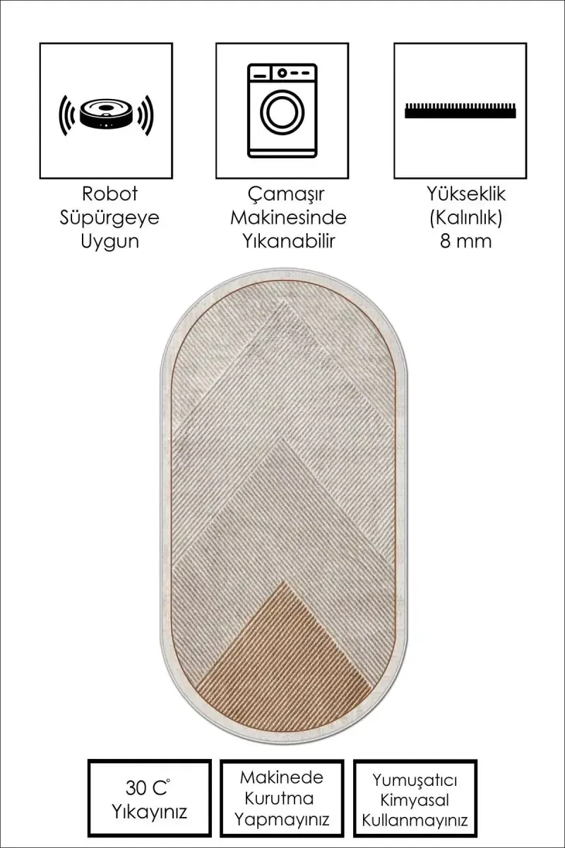 Machine Washable Non-Slip Stain Resistant Oval Living Room Carpet Kitchen Rug and Runner is a stylish and practical solution that will add warmth and comfort to every corner of your home. This rug is designed to meet the needs of modern living and stands out with both its aesthetic appearance and ease of use. The brown tone, in particular, easily adapts to all kinds of decorations, adding a natural and warm atmosphere to your home.Product DescriptionIf you are looking for a rug that will change the atmosphere of your home and add value to your living spaces, the Machine Washable Non-Slip Stain Resistant Oval Living Room Carpet Kitchen Rug and Runner is just for you! This rug will meet your expectations not only aesthetically but also with its practical use. While prioritizing safety thanks to its non-slip base, it will also provide great convenience in terms of cleaning with its stain-resistant feature. Its oval design adds a modern and dynamic touch to your room, while its brown color creates a warm and inviting environment. Whether you use it in your living room, kitchen, or as a runner, this rug will fit perfectly into any space. We know that time for housework is limited in today's busy pace. For this reason, this rug offers you the opportunity to save time thanks to its machine washable feature. Moreover, it retains its vitality even after being washed repeatedly. The surface of the rug is made of high-quality materials, which ensures that it is long-lasting and durable. While enjoying every moment you spend with your family and loved ones, you do not need to worry about the comfort and hygiene of your rug. Machine Washable Non-Slip Stain Resistant Oval Living Room Carpet Kitchen Rug and Runner is not just a rug, but also a detail that reflects your lifestyle. It adds elegance and functionality to your home's decoration, while offering you a peaceful and comfortable living space. Create a warm atmosphere in your home with this rug, impress your guests and always feel special. Remember, your home is your castle and it is up to you to decorate it in the best way possible. This rug is one of the most important elements that will help you achieve this goal.Product Features* Easy to clean thanks to its machine washable feature.* Provides safe use thanks to its non-slip base.* Long-lasting thanks to its stain-resistant feature.* Offers a modern look with its oval design.* Brown color adapts to any decoration.* Can be used in different areas such as living room, kitchen and runner.* Made of high-quality materials.* Long-lasting and durable.* Offers comfortable and hygienic use.Additional InformationOur product is made of environmentally friendly materials and does not contain any substances harmful to health. The rug is very easy to care for. It can be washed in the machine at 30 degrees and dried on low heat. To use your product like the first day for many years, it is recommended that you clean it regularly with a vacuum cleaner and avoid exposing it to direct sunlight.