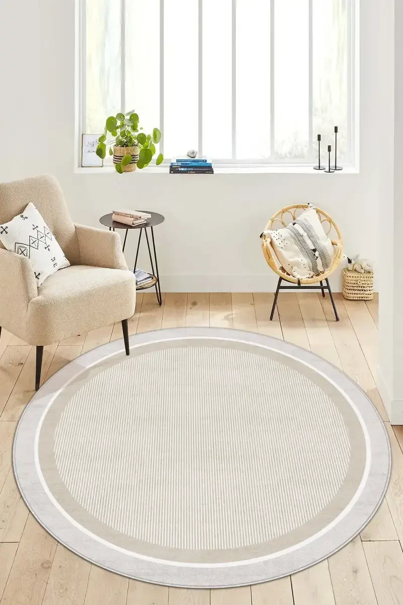 Machine Washable Non-Slip Base Stain Resistant Round Beige Kitchen Carpet Living Room Carpet and Runner-beige has a modern and stylish design that will add warmth and comfort to every corner of your home. Produced with West Home quality, this carpet stands out with both its aesthetic appearance and practical features. Whether you use it in the kitchen, living room, or as a runner, it will add a modern touch to your home. Produced with digital printing technology, this carpet has vibrant and non-fading colors. Beige color adapts to all kinds of decorations and adds a fresh air to your home. Moreover, its round design adds a different dimension to the space and visually enriches it. The silky texture of the carpet offers you unique comfort while walking or sitting on it. Thanks to its softness, it rests your feet and helps you relieve the tiredness of the day.This carpet not only offers a stylish look, but also makes your life easier with its practical use. Thanks to its machine washable feature, cleaning is extremely simple. You can keep your carpet as clean and vibrant as the first day by washing it at 30° without spinning. Thanks to its stain-resistant feature, you can easily clean spilled liquids or food residues. Thanks to its non-slip base, it offers safe use. It is an ideal option especially for families with children or those with pets. The carpet adheres firmly to the floor, preventing slipping and reducing the risk of falling. In this way, you can move safely in your home.This carpet, which prioritizes your health, has antistatic, antiallergic and antibacterial properties. It does not dust and does not leave fluff, which is a great advantage for those with allergies. It does not contain carcinogenic substances and is produced without using materials that harm nature. Thanks to its heat insulation feature, it prevents the coldness of the floor in winter and contributes to energy saving. In summer, it keeps you cool and increases your comfort. Suitable for 4 seasons use, this carpet ensures that your home always looks warm and inviting. Produced with West Home quality, this carpet is long-lasting and durable. Since it is produced from high quality materials, you can use it like the first day for many years.