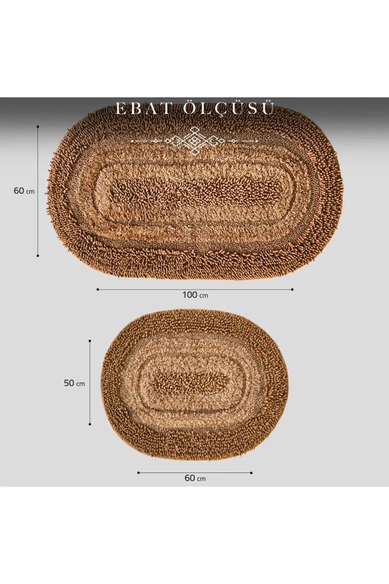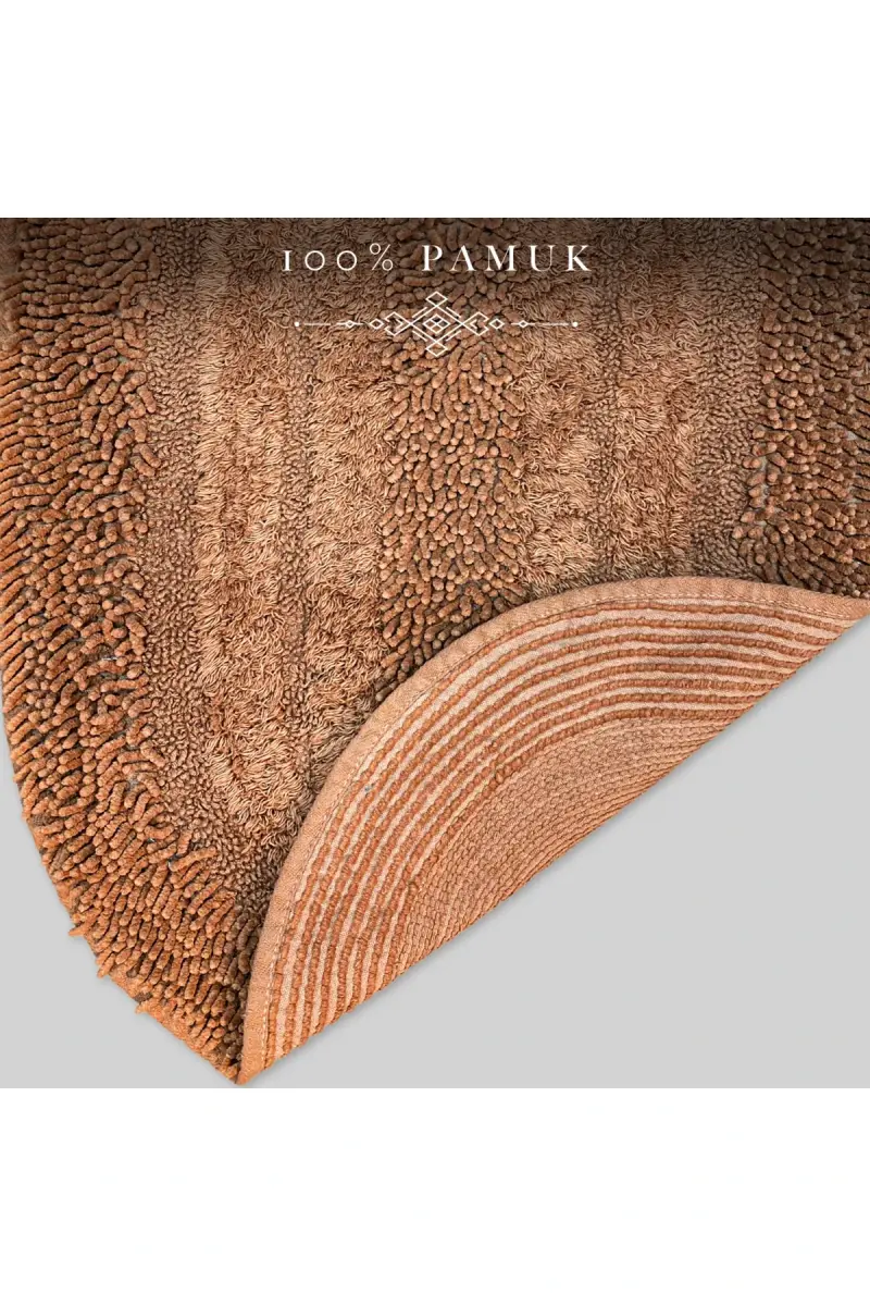 Macoroni Oval Kahve 2'li Banyo Paspası Seti %100 Pamuklu Banyo Halısı Klozet Takımı-Kahve