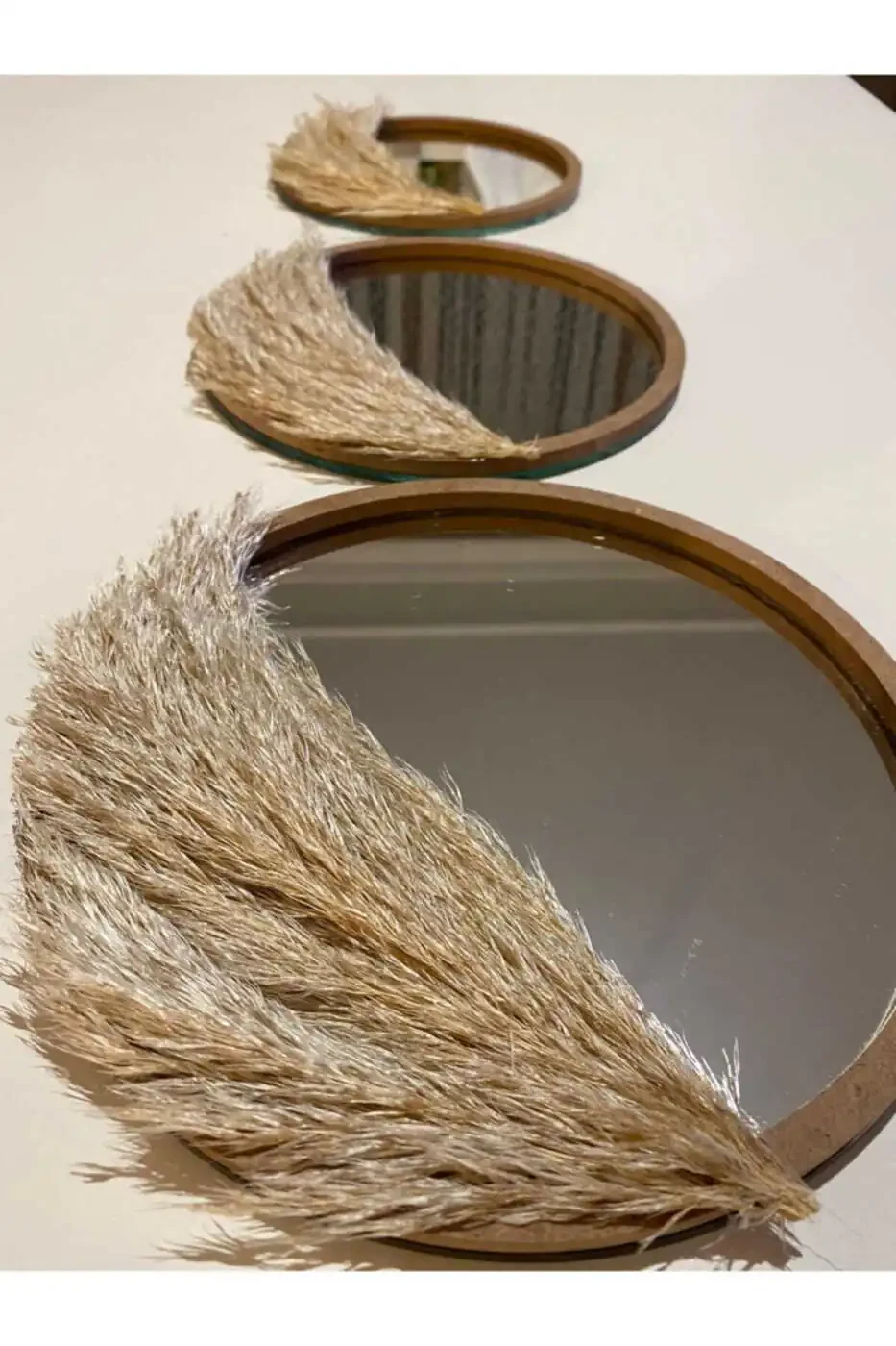 A perfect choice to stylishly decorate your home walls, this 3-piece macrame wall decor set features unique beauty thanks to its handmade nature. Each ring is made with carefully selected natural materials and feathery details. The mirror in the middle adds elegance and depth to your space, creating a captivating atmosphere.