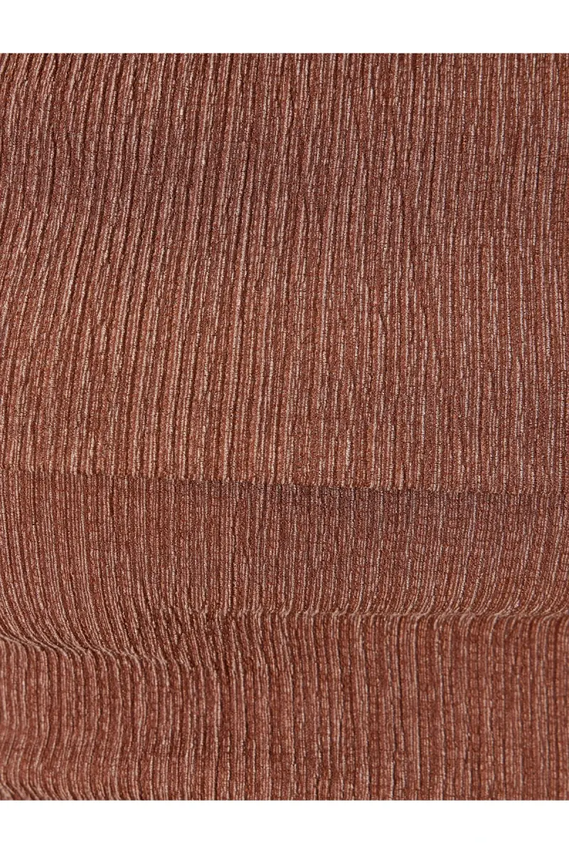 Madonna Yaka Omzu Açık Crop Bluz Kısa Kollu Bürümcük Dokulu Slim Fit-Kahve