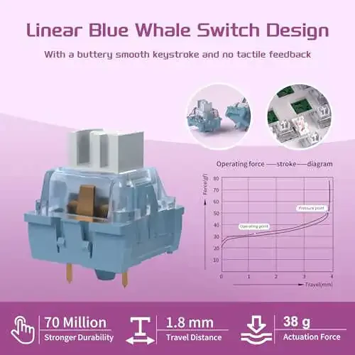 MageGee Wireless Mechanical Keyboard MK98 - o'yin va ofis uchun mo'ljallangan, yuqori xususiyatlarga ega klaviatura. Ushbu klaviatura foydalanuvchilarga ko'p qirrali tajriba taqdim etish maqsadida uch xil ulanish rejimi bilan jihozlangan: Bluetooth, 2.4GHz simsiz va USB-C simli ulanish. Shu bilan, turli ssenariylarda osongina o'tishingiz va qurilmalaringizni tezda ulashingiz mumkin. Bluetooth rejimi bir vaqtning o'zida uch xil qurilmani qo'llab-quvvatlab, ko'p vazifalaringizni osonlashtiradi. Bundan tashqari, Fn+S va Fn+A tugmalar kombinatsiyalari yordamida macOS va Windows tizimlari o'rtasida o'tishingiz mumkin.MK98 jim klaviatura gasket mount dizayni bilan noyob yozish tajribasini taqdim etadi. Yuqori sifatli silikon va ikki qatlamli EVA ovoz izolatsiya ko'piklari tufayli tugmalarni bosganda chiqadigan ovozlar yanada tiniq va aniq bo'ladi. Ushbu tuzilish tugmalarni bosganda yumshoq va moslashuvchan his beradi, shuning uchun yozish jarayoni yoqimli va qiziqarli bo'ladi. Gasket mount dizaynining afzalliklari orasida shovqinni kamaytirish, yuqori barqarorlik, rivojlangan tugma sezgirligi va javob tezligi mavjud.To'liq hot-swappable bo'lgan ushbu klaviatura deyarli barcha switch'lar (3/5-pin) bilan mos keladi. Ushbu xususiyat turli xil mexanik switch'larni xohlaganingizcha o'zgartirishga va o'ziga xos klaviaturangizni yaratishga imkon beradi. Klaviatura moslashtirilgan Blue Whale lineer switch'lari bilan birga keladi. Ushbu switch'lar 70 million tugma bosilishigacha chidamli va oldindan yog'langan, shuning uchun ultra silliq va teginishsiz fikr-mulohazalarni taqdim etadi.MageGee MK98 PBT materialli keycap'lar bilan jihozlangan. Ushbu keycap'lar yanada ekologik toza variant bo'lish bilan birga, aralash rangli dizaynlari, nozik to'qimalari va so'nmaydigan belgilari bilan ajralib turadi. Yaxshi aşınma qarshiligi va qarishga qarshi xususiyatlari tufayli uzoq muddatli foydalanishni taklif qiladi. Ergonomik baland va past tugma tartibi va sozlanishi orqa oyoqlar, har bir tugma ostida joylashgan ergonomik chuqur qurilma bilan birgalikda, qulay foydalanish tajribasini ta'minlaydi.MageGee MK98 simli o'yin klaviaturasi turli xil dinamik va rangli RGB orqa yoritish effektlari bilan birga keladi. Istalgan orqa yoritish effektlarini sozlashingiz, yorqinlikni Fn+↑/↓ tugmalari bilan sozlashingiz, tezlikni Fn+-_/= tugmalari bilan o'zgartirishingiz, bir rang uchun Fn+ →, RGB ranglari uchun Fn+SPACE va orqa yoritish rejimini Fn+INS tugmalari bilan o'zgartirishingiz mumkin. Turli xil jonli va yorqin orqa yoritish effektlari o'yin tajribasiga qiziqarli havo qo'shsa, zerikarli vazifalarga qiziqarli teginish qo'shadi. Kerak bo'lmaganda orqa yorug'likni Fn+Del tugmalari bilan o'chirishingiz mumkin.Kompakt dizaynli ushbu klaviatura 98 tugmali tartibga ega va o'yin va ishlash uchun zarur bo'lgan o'q tugmalarini va sonli maydonni saqlaydi. Ichki 4000mAh yuqori sig'imli batareya tufayli tez-tez zaryadlash muammosidan xalos bo'ling. Uzoq batareya muddati bilan butun kun davomida ishlash yoki o'yin samaradorligingizni qo'llab-quvvatlaydi.