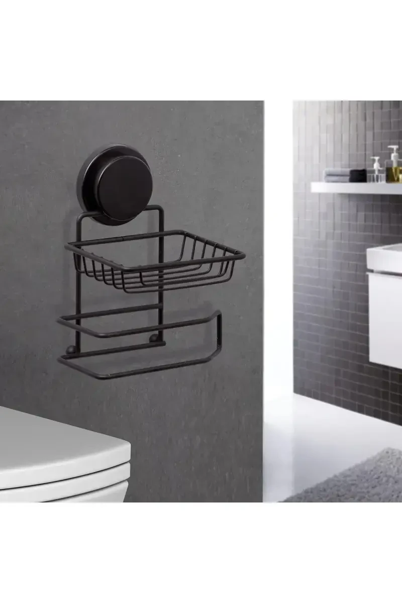 Magic Fix Qora Zaxirali hojatxona qog'ozi ushlagichi | Vakuumli, teshiksiz o'rnatish