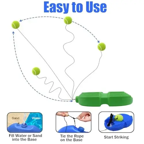 Magicorange Tennis Trainer Rebound Ball to'plami bilan tennis mahoratini mustaqil ravishda oshirishdan rohatlaning! Ushbu keng qamrovli to'plam yangi boshlanuvchilar va tajribali tennis o'yinchilari uchun ideal mashg'ulot yechimidir. Siz servislaringizni, forhend va bekhend zarbalaringizni yaxshilashni xohlaysizmi, bu to'plam sizga sherik yoki to'p mashinasi holda mashq qilish imkoniyatini beradi. Yuqori sifatli materiallardan tayyorlangan ushbu to'plam bardoshli va uzoq umr ko'radi. Yuqori zichlikdagi pe plastmassadan tayyorlangan taglik mustahkam va barqaror poydevorni ta'minlaydi, maxsus ishlab chiqilgan shnurli to'plar esa qayta-qayta zarba berish imkonini beradi. To'pga urganda, tennis to'pi tortish ipi tufayli sizga qaytib keladi va shu bilan doimiy va samarali mashg'ulot tajribasini ta'minlaydi. Mahsulotning aqlli dizayni foydalanish qulayligi va ko'chirish qulayligini hisobga olgan holda ishlab chiqilgan. Yuqori qismida joylashgan yarim doira oluk to'plarni ishlatmaganda saqlash uchun idealdir. O'rta qismida joylashgan halqa shaklidagi oluk esa rezina ipning chalkashishiga yo'l qo'ymaydi, shu bilan mashg'ulotingizga e'tibor qaratishingiz mumkin. Pastki qismida joylashgan sirpanishga qarshi material mashg'ulot tagligining joyida qolishini ta'minlaydi. Yengil va ko'chma dizayni tufayli, bu tennis murabbiyini xohlagan joyga osongina olib borishingiz mumkin. Mashg'ulot tugagandan so'ng, ipni taglik atrofida o'rang va o'zingiz bilan olib yuring. Yon tomonga qo'shilgan tashish tutqichi esa tashishni yanada oson va qulay qiladi. Magicorange Tennis Trainer Rebound Ball to'plami ochiq havoda mashq qilish uchun mukammal tanlovdir. Uni parklarda, tennis kortlarida, orqa hovlilarda yoki xohlagan joyingizda ishlatishingiz mumkin. Bu tennis o'ynashni yaxshi ko'radigan do'stlaringiz va oila a'zolaringiz uchun ajoyib sovg'adir. Ushbu to'plam bilan tennis mahoratini oshirishdan rohatlaning va formangizni saqlang!