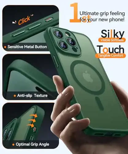 **Чехол CANSHN Magnetic, совместимый с iPhone 16 Pro, обновленный [полная защита камеры] [совместимый с Magsafe] [полупрозрачный матовый] ударопрочный защитный чехол для телефона 6,3 дюйма - темно-зеленый**