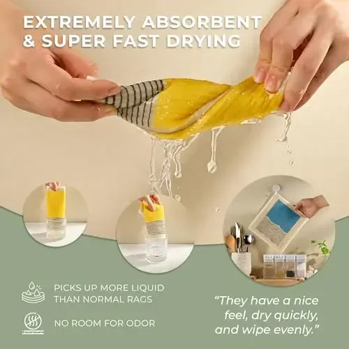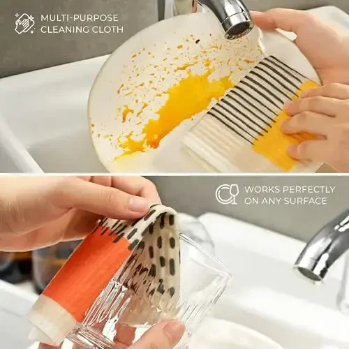 Enjoy hygiene and practicality in the kitchen with MaisoNovo Swedish Dishcloths! This special set offers an environmentally friendly and economical alternative to traditional paper towels. It includes 4 Swedish dishcloths, each with high absorbency, washable, and reusable. They add elegance to your kitchen with their abstract patterns and simplify your cleaning tasks.**Product Description**MaisoNovo Swedish Dishcloths are an environmentally friendly solution that combines hygiene and practicality in the kitchen. Unlike traditional paper towels, these dishcloths can be reused over and over, so you both protect nature and ease your budget. Thanks to their high absorbency, they easily clean up spills, polish surfaces, and keep your kitchen counter sparkling at all times. Each cloth adds a modern touch to your kitchen with specially designed abstract patterns. These patterns not only offer an aesthetic look but also ensure that the cloths look new and vibrant with every use. MaisoNovo Swedish Dishcloths can be used not only in the kitchen but also as a versatile cleaning tool in other areas of your home. It provides effective cleaning on many different surfaces, from bathroom surfaces to furniture, from glass to mirrors. The durable structure of the cloths guarantees that they can be washed and used many times, making them an extremely economical option in the long run. MaisoNovo Swedish Dishcloths are an ideal choice for those who adopt an environmentally conscious lifestyle and offer a sustainable cleaning experience. This set is a perfect starting point for anyone who wants to raise hygiene standards in the kitchen. The unique abstract pattern of each cloth adds color and energy to your kitchen, while its practical use makes your cleaning tasks enjoyable. Protect the environment and simplify your kitchen cleaning with MaisoNovo Swedish Dishcloths. These cloths, which are candidates to be your helper in the kitchen, offer you hygiene, practicality and elegance in every use. Start a new era in kitchen cleaning and experience the MaisoNovo difference. These cloths are not just a cleaning tool, but also a stylish accessory that contributes to the decoration of your kitchen. Each detail has been carefully designed and these cloths are specially produced for long-lasting use. Kitchen cleaning is now easier, more stylish and more environmentally friendly with MaisoNovo Swedish Dishcloths!**Product Features*** Has high absorbency.* Washable and reusable.* It is an environmentally friendly alternative.* It has a stylish abstract pattern design.* Can be used in kitchen, bathroom and other surfaces.* Long lasting and durable.* It is an economical solution.* Reduces the use of paper towels.* Dries quickly.* It has a stain-resistant structure.* Various color and pattern options are available.* Does not smell.* Easy to clean.* Lightweight and practical to use.**Additional Information**MaisoNovo Swedish Dishcloths are made from natural cellulose and cotton fibers. Thanks to this, it is both environmentally friendly and has high absorbency. You can wash the cloths in the washing machine after use and reuse them. It is recommended to wash at low temperature for long-lasting use. The product does not contain harmful chemicals and can be used safely.