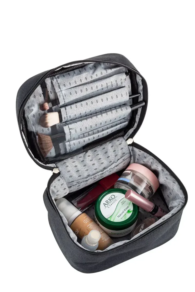 Makeup Bag Cosmetic Makeup Box - BLACK, carry your beauty everywhere! Combining elegance and practicality, this makeup bag allows you to store all your cosmetic products in an organized manner and access them easily. It is an ideal companion for travels, daily use or professional makeup applications. It is made of durable material and offers long-lasting use. Designed with the elegance of black, this bag has an elegant appearance that appeals to all tastes. Thanks to the inner compartments, you can place your brushes, palettes, lipsticks and other makeup materials separately, thus preventing clutter. It is easy to carry with its lightweight structure and does not take up much space in your bag. This unique makeup bag, which will make your makeup routine easier, save you time and help you look well-groomed at all times, will be an indispensable part of the beauty world. Safely store your makeup materials, keep them organized and showcase your beauty wherever you want.Product DescriptionMakeup Bag Cosmetic Makeup Box - BLACK, a candidate to be the indispensable of the modern woman! This stylish and functional bag, which will be an integral part of your beauty routine, is designed to meet all your cosmetic needs. It offers a perfect solution for busy work schedules, travels or just daily use. Designed with the timeless elegance of black, this makeup bag will adapt to every style and take you one step further in any environment. Made of high quality materials, it offers durability for long-term use. Thanks to its inner compartments, you can store all your cosmetic products, from makeup brushes to eyeshadow palettes, from lipsticks to mascaras, in an organized manner and access them easily. Different sized compartments provide ideal space for all kinds of makeup materials, minimizing clutter inside the bag. Thanks to its lightweight and compact design, you can easily carry it in your travels or in your daily bag. It helps you keep your makeup materials safe and organized at the same time. You will no longer have to deal with problems such as lost brushes or broken eyeshadow palettes. Makeup Bag Cosmetic Makeup Box - BLACK not only offers you a regular makeup area, but also speeds up your makeup routine. You can easily reach everything you need, save time and always look well-groomed. This bag, which can meet the needs of everyone from professional makeup artists to beginners in makeup, will become one of the indispensable of the beauty world. Safely store your makeup materials, keep them organized and showcase your beauty wherever you want. Offering elegance, practicality and durability together, this makeup bag will take your beauty routine to the next level. Remember, beauty is hidden in the details and Makeup Bag Cosmetic Makeup Box - BLACK perfectly complements these details.Product Features* Stylish and elegant black design* Durable and long-lasting material* Inner compartments of different sizes* The possibility of storing makeup materials regularly* Lightweight and portable design* Ideal for travel and daily use* Suitable for brushes, palettes and other cosmetic products* Regular structure that prevents clutter* Easy accessibility* Suitable for professional and personal useAdditional InformationThe product is made of high quality materials. It is easy to clean, you can clean it by wiping with a damp cloth. It is recommended to keep it away from direct sunlight and extreme heat. Makeup materials are not included, they are used for visual purposes.