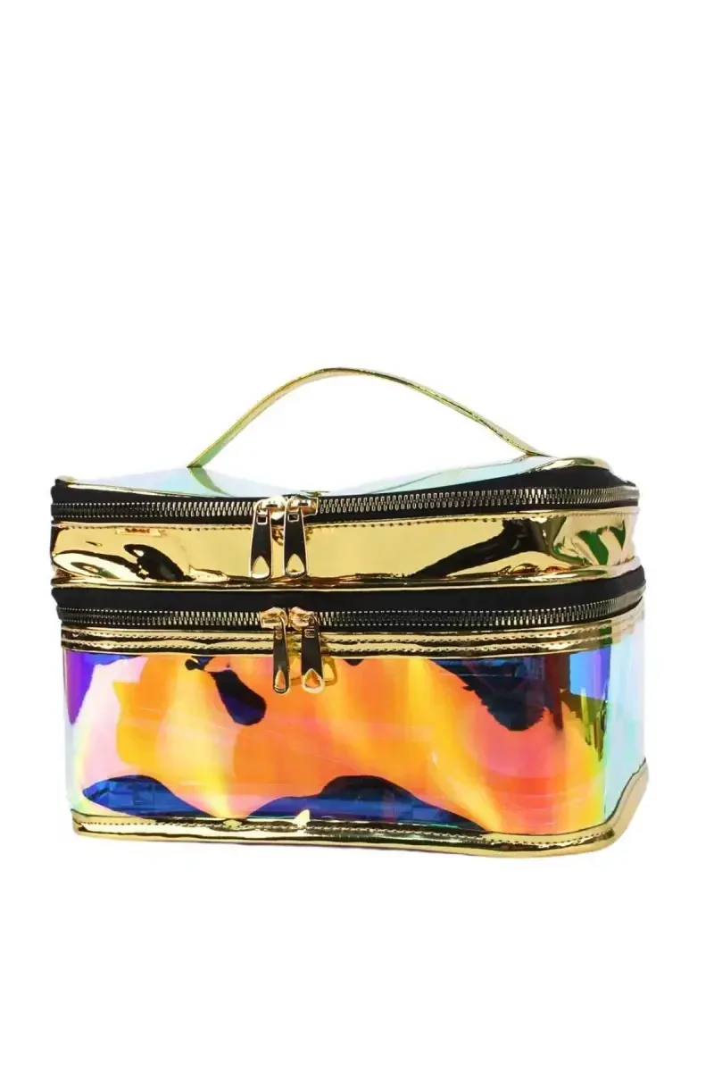 Makeup Bag Gold Transparent Compartment Organizer | Travel Care Bag - Yellow