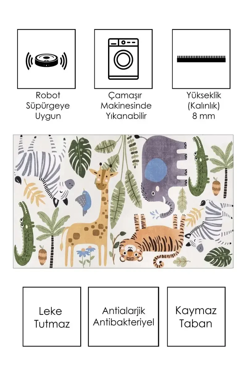 Meet the Machine Washable Non-Slip Base Stain-Proof Educational Carpet Baby and Kids Rug Play Mat, designed for children's rooms and play areas, offering a fun and practical solution! This rug creates a comfortable space where your children can play, crawl, and learn safely, while also providing great advantages for parents in terms of cleaning and ease of use. With its vibrant green color and educational design, this rug will appeal to every child's imagination and add joy and vitality to their rooms.Product DescriptionThe Machine Washable Non-Slip Base Stain-Proof Educational Carpet Baby and Kids Rug Play Mat is produced with your children's health and safety in mind. The surface of the rug is made of a special fabric that does not harm children's sensitive skin and has antiallergic and antibacterial properties. This makes it an ideal choice for children with allergies or sensitive skin. Thanks to its stain-proof feature, any food or drink spilled on it can be easily cleaned, so your rug always stays as clean and hygienic as the first day. One of the most important features of the rug is that it is machine washable. You can easily wash the rug, which gets dirty due to intensive use, in the washing machine and make it ready for reuse in a short time. This feature provides great convenience, especially for families with small children. The non-slip base on the underside of the rug ensures that the rug stays fixed on the floor. This eliminates the risk of the rug slipping while children are playing active games or crawling, and provides a safe play environment. The non-slip base also ensures that the rug can be used safely on different floors such as parquet, tiles or laminate. The educational design of the rug supports children's learning processes. The colorful patterns, shapes and numbers on it improve children's visual perception and cognitive skills. Children can contribute to their education in a fun way by learning colors, shapes and numbers while playing on the rug. The rug is not just a play mat, but also a learning tool. The size of the rug is ideal for children's rooms and play areas. While providing a sufficiently large play area, it does not spoil the overall appearance of the room. Thanks to its foldable and easily portable feature, the rug can also be used in different places. For example, you can carry the rug with you on picnics, in the garden or on trips, creating a safe and comfortable play area for your child everywhere. The durable structure of the rug ensures that it is suitable for use for many years. The rug, produced from quality materials, is resistant to wear, fading and deformation. In this way, you can use the rug safely for a long time and prevent your child from being deprived of the joy of playing. The Machine Washable Non-Slip Base Stain-Proof Educational Carpet Baby and Kids Rug Play Mat is an ideal product that provides a safe, comfortable and educational play area for your children, as well as providing ease of cleaning and use for parents. With this rug, you can make your children's playtime more enjoyable and safe.Product Features* Machine washable* Non-slip base* Stain-proof surface* Educational design* Antiallergic and antibacterial material* Suitable for children's sensitive skin* Easy to clean* Durable structure* Foldable and portable* Vibrant colors and patterns* Can be used on different floors* Provides a safe play environment* Improves cognitive skills* Ideal size for children's rooms and play areasAdditional InformationBe sure to wash the carpet before using it for the first time. Wash according to washing instructions. Avoid exposing the carpet to direct sunlight. Do not use sharp or piercing tools on the carpet. Clean the carpet regularly with a vacuum cleaner. In case of staining, clean the stain immediately. When you are not using the carpet, store it folded or rolled up.
