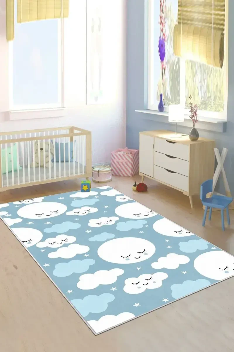 Machine Washable Non-Slip Stain-Resistant Star Patterned Baby and Child Carpet Play Mat is an excellent option that ensures your children are comfortable while playing or crawling, while also providing a hygienic and safe environment. This carpet stands out not only with its stylish design but also with its practical features. This carpet, which will be indispensable for children's rooms, will appeal to both parents and children.Product DescriptionThe Machine Washable Non-Slip Stain-Resistant Star Patterned Baby and Child Carpet Play Mat, produced with your children's health and safety in mind, will be their best supporter in their playing, crawling, and exploring processes. The non-slip base of the carpet ensures safety even during your children's active games. The carpet firmly grips the floor, preventing slips and falls. This feature offers a great advantage, especially for babies in the crawling stage and active children. It creates a safe play area, providing peace of mind for parents. Thanks to its stain-resistant feature, you can easily clean up spills or food that falls on the carpet. This feature provides great convenience, especially considering that young children often cause messes. Thanks to its stain-resistant surface, the carpet retains its original appearance for a long time and is easy to clean. You can easily remove stains by simply wiping it with a damp cloth or using a mild detergent. This way, your carpet always stays clean and hygienic. The star-patterned design adds joy and vibrancy to children's rooms. Its blue color also brings a fresh atmosphere to their rooms. The star patterns on the carpet stimulate children's imaginations and offer them a fun play environment. With its vibrant colors and cute patterns, the carpet complements the decoration of the children's room and adds a warm atmosphere to the room. One of the most important features of the carpet is that it is machine washable. If children often get the carpet dirty, you can easily wash it in the washing machine. This feature ensures that the carpet remains hygienic and provides great convenience for parents. By washing the carpet at a low temperature and on a delicate program, you can ensure that it remains as clean and new as the first day. Made of high-quality materials, this carpet is long-lasting and durable. It is a product that your children can safely use for many years. The soft texture of the carpet allows your children to sit and play comfortably on it. At the same time, the carpet prevents discomfort that may arise from sitting on cold floors. The carpet, which does not contain any substances harmful to your children's health, is a product that you can use with confidence. Machine Washable Non-Slip Stain-Resistant Star Patterned Baby and Child Carpet Play Mat is not just a carpet, but also offers a safe, hygienic, and fun play area for your children. While providing a practical and useful solution for parents, it also contributes to children's development. This carpet will be an indispensable part of the children's room and will make the lives of both parents and children easier. By choosing this carpet for your children's comfort and happiness, you can provide them with an unforgettable play experience.Product Features* Easily cleaned thanks to its machine washable feature.* Offers a safe play area thanks to its non-slip base.* Provides long-lasting use with its stain-resistant feature.* Adds joy to children's rooms with its star-patterned design.* Made of materials suitable for the sensitive skin of babies and children, and does not contain harmful substances.* Offers a comfortable play environment thanks to its soft texture.* Prevents discomfort that may arise from sitting on cold floors.* Can be used for many years thanks to its durable structure.* Has a stylish design that complements children's room decoration.* Ideal for babies in the crawling stage and active children.* Easily portable and storable thanks to its lightweight structure.* Provides a hygienic environment thanks to its antibacterial feature.* Offers a fun play area that develops children's imaginations.* A practical and useful solution for parents.* Designed with children's comfort and safety in mind.Additional InformationThe dimensions of the product are \[Size Information to be Added]. The thickness of the carpet is \[Thickness Information to be Added]. It is recommended to wash the product at 30 degrees in the washing machine for cleaning. Bleach or similar chemical substances should not be used. The carpet can be dried by laying it out or hanging it. It is recommended to ventilate the product before its first use. The colors of the carpet may show slight differences depending on the screen resolution. The product is shipped folded in its packaging and will straighten out shortly after being opened. The materials used in its production comply with OEKO-TEX standards.
