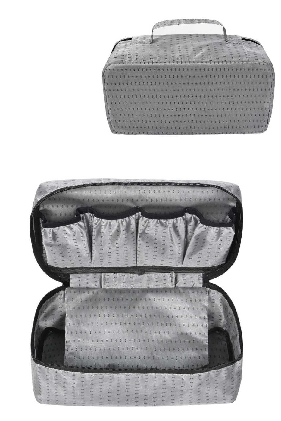 Bu ko'p qirrali tashkilotchi **makiyaj vositalarini, ichki kiyimlarni, mayda aksessuarlarni yoki sayohat paytida kerak bo'lishi mumkin bo'lgan boshqa narsalarni tashkil qilish** uchun idealdir. Chidamli va suv o'tkazmaydigan materialdan tayyorlangan, bu sizning narsalaringiz xavfsiz va tartibda qolishiga kafolat beradi. Bundan tashqari, uning zamonaviy dizayni sizning chamadoningizga yoki sumkangizga oqlangan ko'rinish beradi.