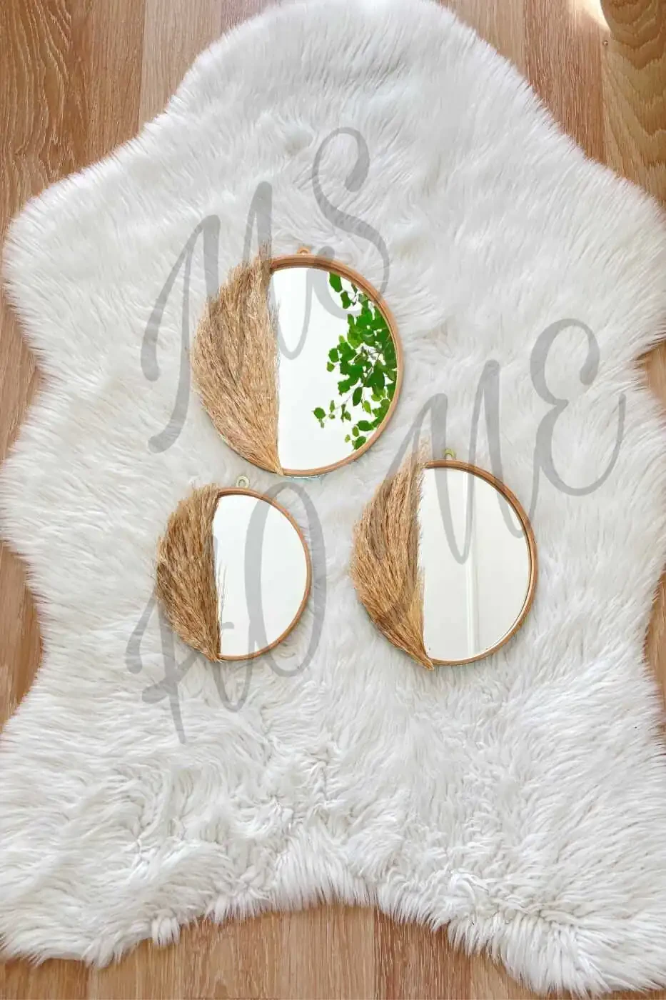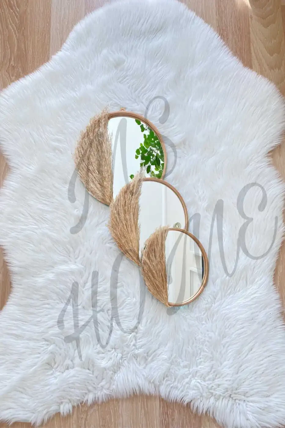 Uyingiz devorlarini zamonaviy tarzda bezash uchun mukammal tanlov bo'lgan bu 3 dona makrame devoriy bezaklari to'plami, qo'lda ishlanganligi tufayli noyob go'zallikka ega. Har bir halqa ehtiyotkorlik bilan tanlangan tabiiy materiallar va patsimon tafsilotlardan iborat. Markazdagi oyna, makonga nafislik va chuqurlik qo'shib, jozibali muhit yaratadi.