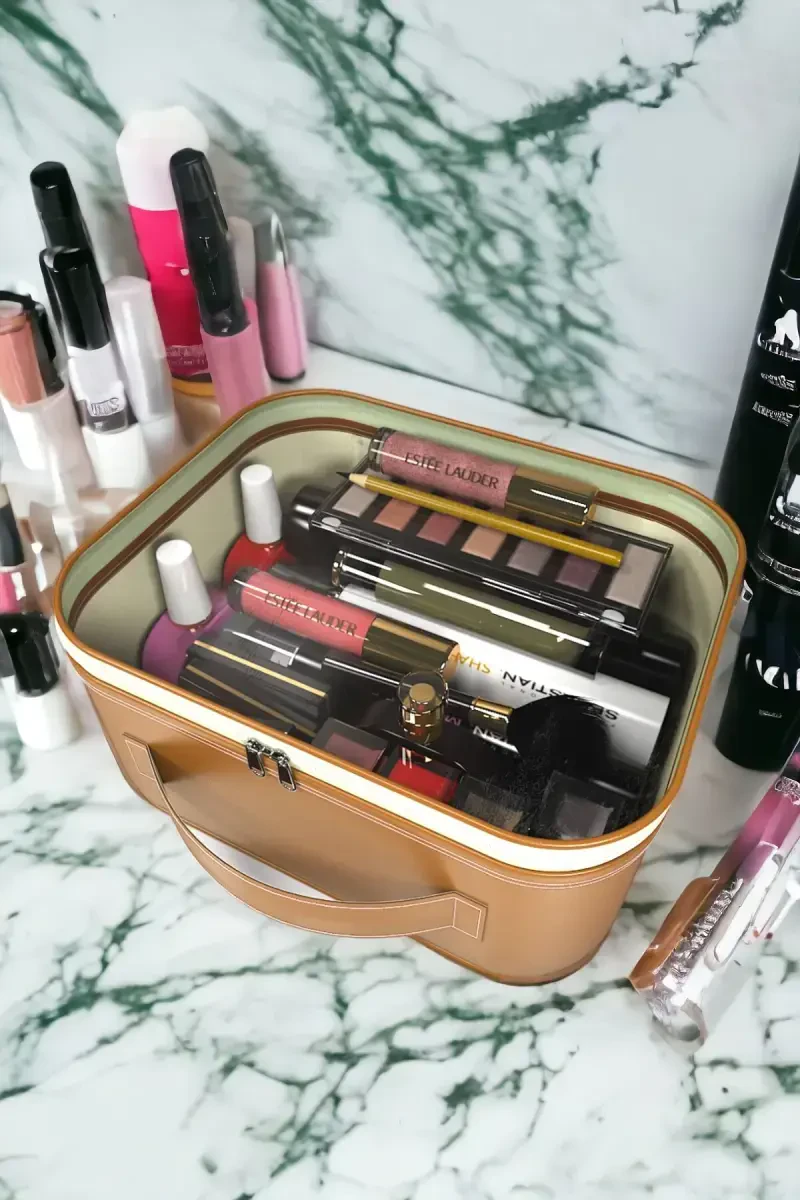 Makyaj Çantası Seyahat Organizeri | Kozmetik Fırça Düzenleyici | Şeffaf Kahverengi Makyaj Çantası