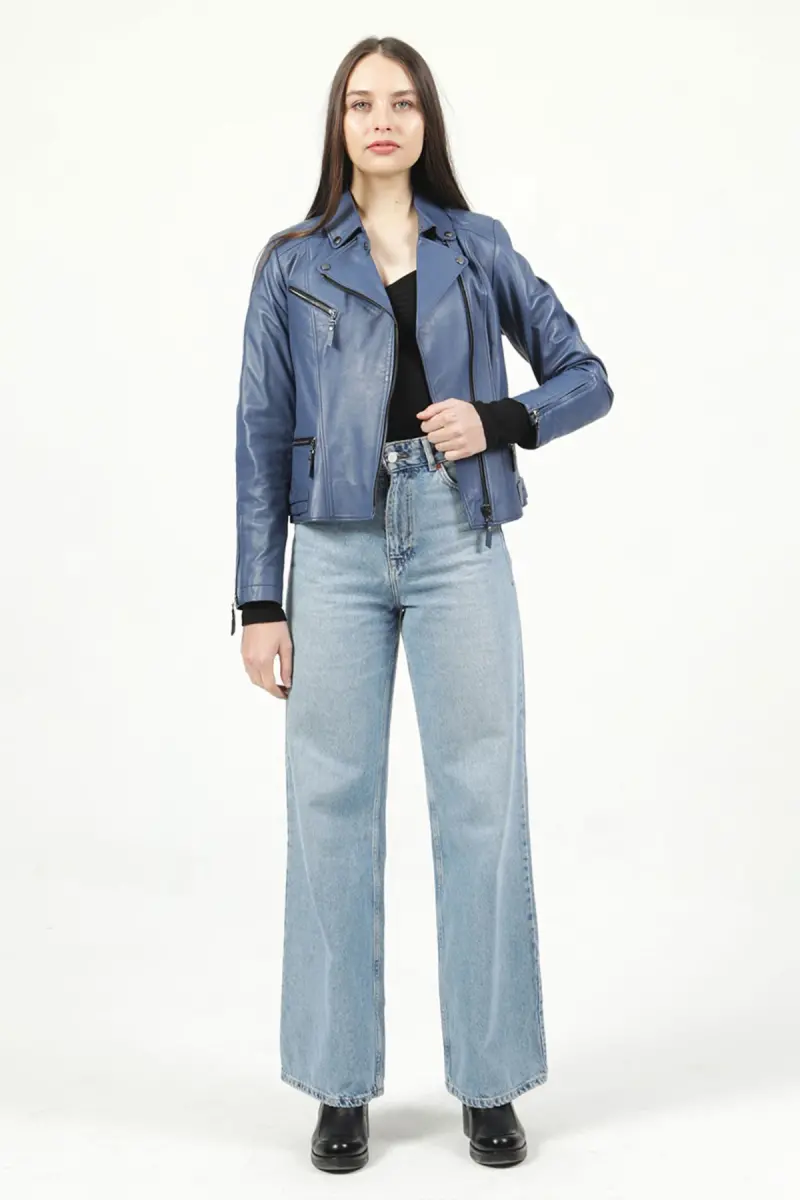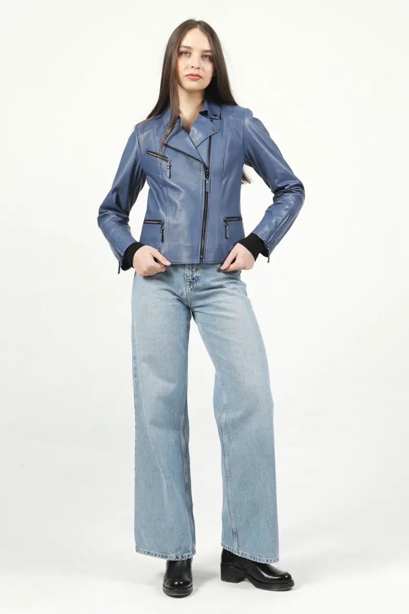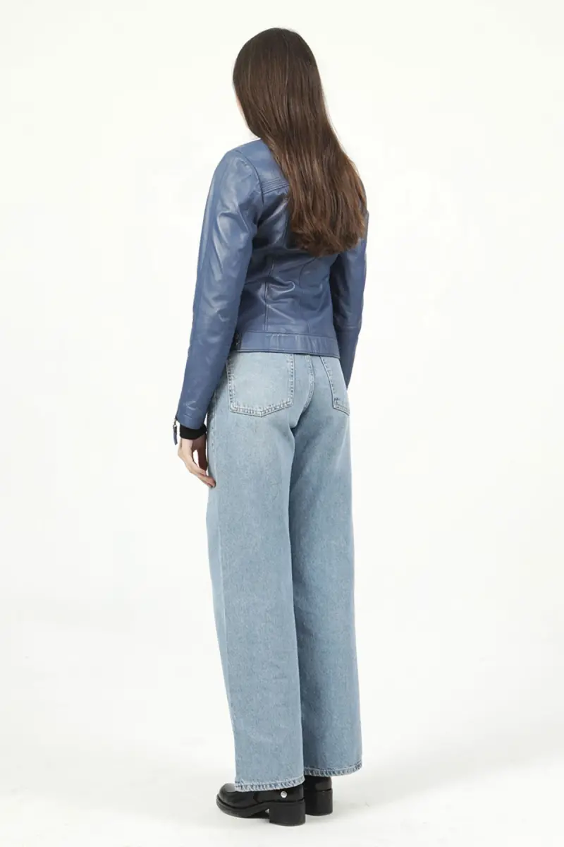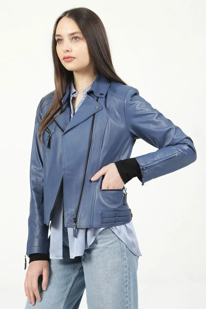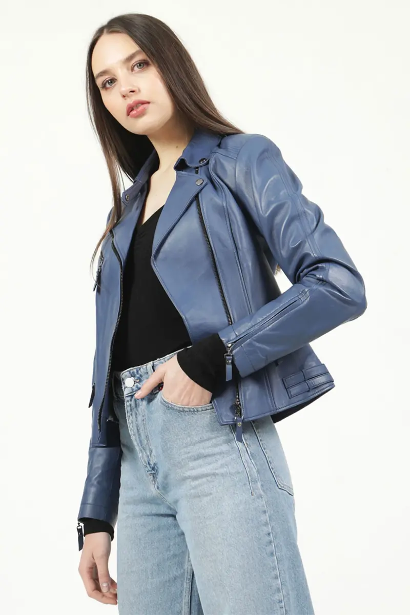 Malartic Kadın Slimfit Hakiki Deri Mont Mavi-MAVİ