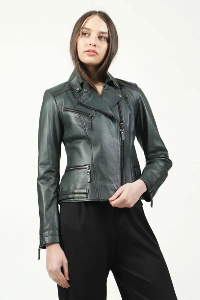 Bu ürün DERİCLUB tarafından gönderilecektir.Kampanya fiyatından satılmak üzere 5 adetten az stok bulunmaktadır.Bir ürün, birden fazla satıcı tarafından satılabilir. Birden fazla satıcı tarafından satışa sunulan ürünlerin satıcıları ürün için belirledikleri fiyata, satıcı puanlarına, teslimat statülerine, ürünlerdeki promosyonlara, kargonun bedava olup olmamasına ve ürünlerin hızlı teslimat ile teslim edilip edilememesine, ürünlerin stok ve kategorileri bilgilerine göre sıralanmaktadır.Bu üründen en fazla 10 adet sipariş verilebilir. 10 adedin üzerindeki siparişleri Trendyol iptal etme hakkını saklı tutar. Belirlenen bu limit kurumsal siparişlerde geçerli olmayıp, kurumsal siparişler için farklı limitler belirlenebilmektedir.15 gün içinde ücretsiz iade. Detaylı bilgi için [page="return_conditions"]tıklayın .MALARTIC Kadın Slim Fit Motorcu Deri CeketMotorcu stilinden ilham alan tasarımı, asimetrik fermuar kapama ve metal çıtçıt detaylı yaka ile tamamlanır.Göğüs kısmında yatay fermuarlı bir cep ve alt bölümde iki adet fonksiyonel fermuarlı cep yer alır.Kol uçlarındaki fermuarlar, bel kısmındaki çift bant görünümlü dikiş detayları ve sırt bölümündeki şekillendirme dikişleriyle güçlü bir siluet sunar.%100 gerçek koyun derisinden üretilmiş ve tam astarlı iç kısmıyla hem şık hem de dayanıklı bir yapı sunar.Fit kalıbı sayesinde vücuda tam otururjean, etek veya elbiselerle kolayca kombinlenebilir, gündüzden geceye geçiş stillerinde rahatlıkla kullanılabilir.Modelin boyu 172 cm. , kilosu 57 kg’dır ve üzerindeki ürün S bedendir.