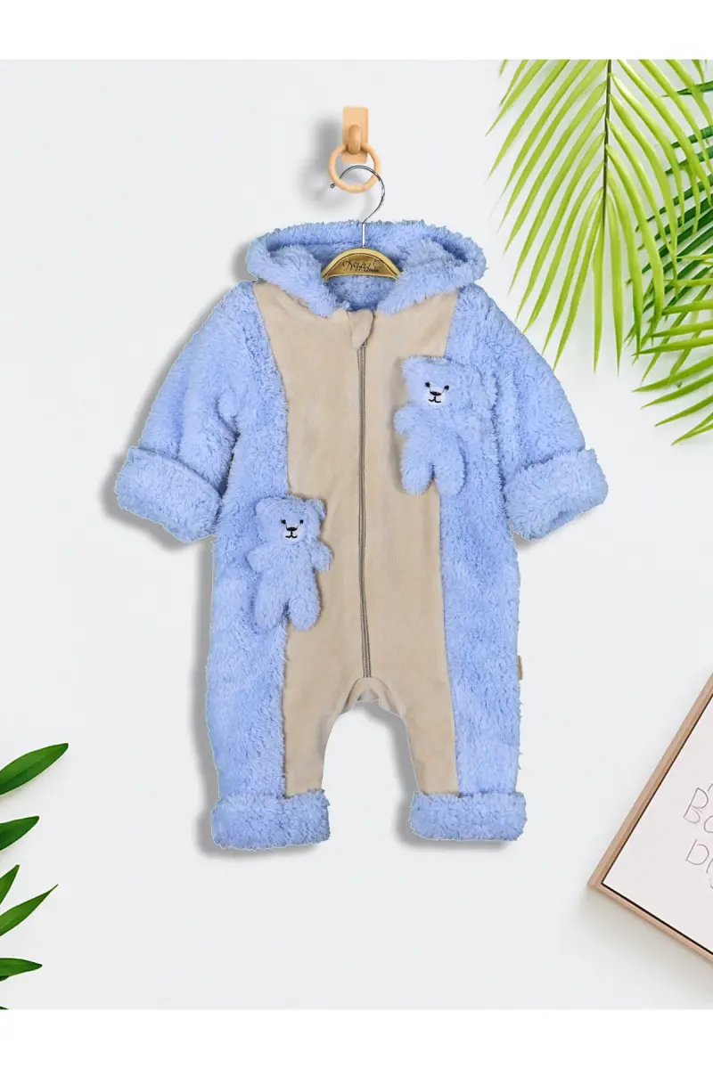 If you are looking for a warm and stylish winter romper that cares for your little baby's sensitive skin, the Bear Embroidered Winter Welsoft Romper for Baby Boys is just for you! This adorable romper will safely protect your baby from the cold winter weather, keeping their comfort and health in mind. Moreover, it will add a cute touch to your baby's style with its bear design.This romper is carefully produced by [page="merchant_info"]İLKE TEKSTİL[/page] and does not contain any substances that may harm your baby's sensitive skin. Thanks to its cotton material, it is compatible with your baby's skin and ensures that they are comfortable throughout the day. Its long-sleeved design protects your baby's tiny arms from the cold, while the hooded collar type keeps the head and neck area warm. Thanks to its regular fit that does not restrict your baby's freedom of movement, it maintains their comfort even while playing or sleeping.The blue color option adds a different touch to your baby's style and offers a peaceful sleep experience with its calming effect. The special material consisting of velvet, welsoft and cotton mixture increases the durability of the romper, while its soft texture gently touches your baby's skin. Thanks to the washing option up to 30°, which makes mothers' lives easier, you can easily clean the romper and use it for a long time. It also provides extra ease of use with its ability to be ironed at medium temperature.This romper, which is of Turkish origin, guarantees domestic production quality and takes care of your baby's health. It is colored with baby-friendly, non-carcinogenic dyes, so you don't have to worry about your baby's health. Ideal for daily use, you can easily prefer this romper in casual environments. This romper, which will be an indispensable part of your baby's wardrobe, offers both style and comfort together.This unique romper will ensure that your baby spends the winter months warm and happy. You can easily use this romper both at home and outdoors, and it will be one of your baby's favorite clothes. If you care about your baby's comfort and style, add the Bear Embroidered Winter Welsoft Romper for Baby Boys to your cart now!