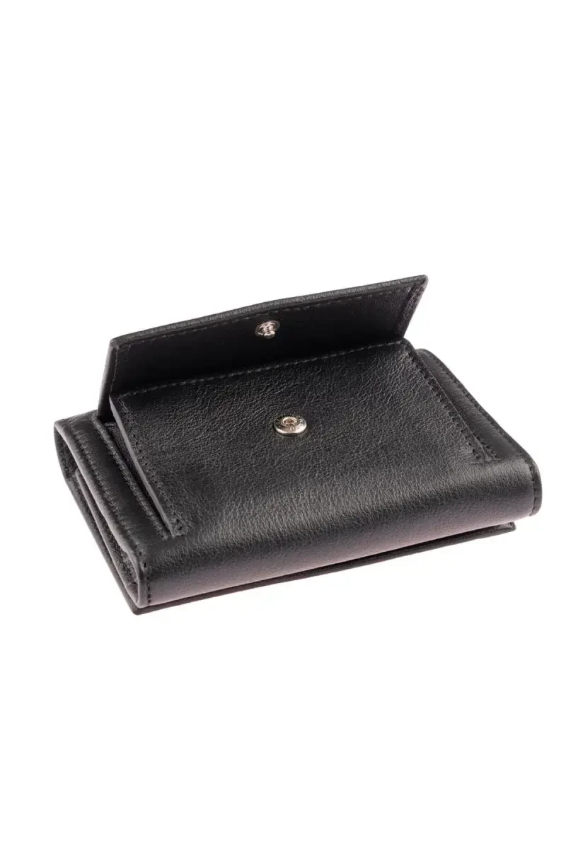 Этот стильный и функциональный черный кошелек из натуральной кожи станет незаменимым спутником вашей повседневной жизни. Элегантный дизайн и высококачественный материал делают его настоящим украшением, а компактный размер позволяет легко носить его в сумке или кармане.