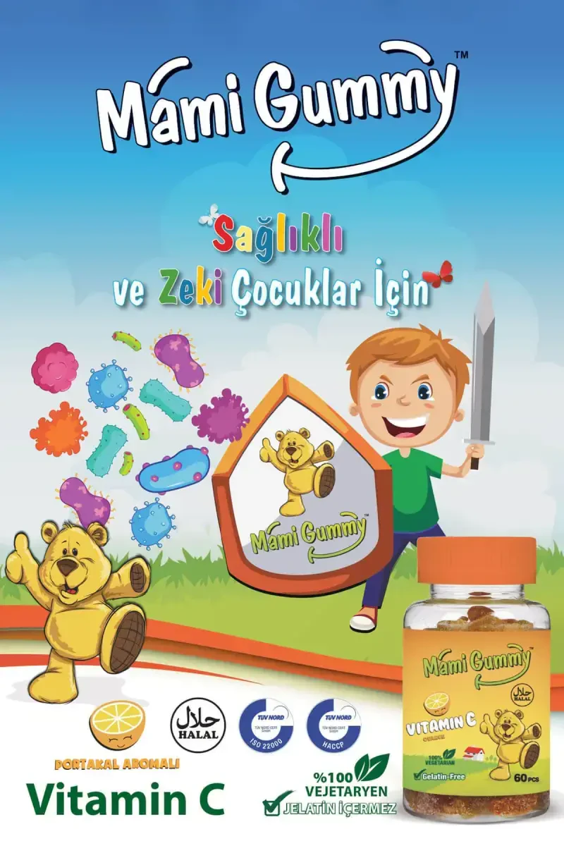 mamigummy, kids gummies, vitamin c, chewable, gummy jellies, orange flavor, immune system, children's vitamin
