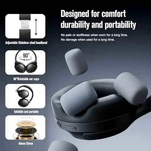 MANAYO Aktif Gürültü Önleyici Bluetooth Kulaklık | 150 Saat Pil, 45dB ANC, Düşük Gecikme, Katlanabilir ve Dönebilir Tasarım