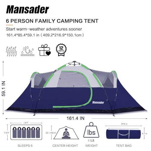 Mansader 6 Kişilik Aile Kamp Çadırı ile açık hava maceralarınızı daha keyifli hale getirin!