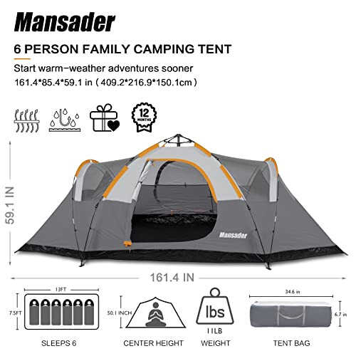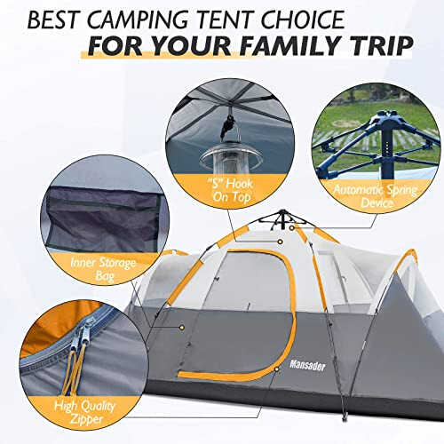 The Mansader 6 Person Family Camping Tent is ideal for camping, hiking, traveling, picnicking, and other outdoor activities. Enjoy the outdoors with your family and friends!