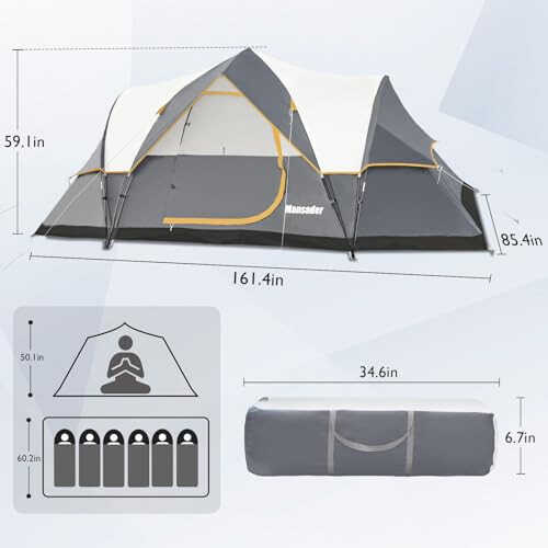 The Mansader 6 Person Family Camping Tent is a perfect choice for your outdoor adventures. Its waterproof and windproof canvas, top rainfly, and easy setup design keep you dry and comfortable in any weather conditions. Its spacious interior allows for comfortable sleeping for up to 6 people. It also offers ample storage space to keep your belongings organized.