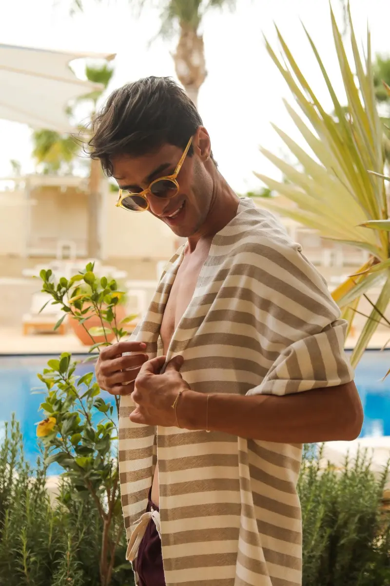 Mare Sand Beige peştamal ile plajda, havuzda veya evde rahatlığın ve şıklığın tadını çıkarın. Bu özel peştamal, %60 oranında organik pamuk ve %40 oranında geri dönüştürülmüş pamuktan üretilmiştir. Hem çevreye duyarlı bir seçim yapmanızı sağlar, hem de cildinize nazik dokunuşlarla konfor sunar. 90x180 cm boyutları sayesinde geniş bir kullanım alanı sunan Mare Sand Beige, üzerinize rahatlıkla sarılabilir, güneşlenirken serilebilir veya şık bir aksesuar olarak kullanılabilir. Sand Beige'in doğal ve zarif tonu, her ortama uyum sağlar ve size sofistike bir görünüm kazandırır. Mare Sand Beige peştamalın en büyük avantajlarından biri de taşıma kolaylığıdır. Beraberinde gelen özel taşıma çantası sayesinde, peştamalınızı katlayıp kolayca çantanıza yerleştirebilir ve istediğiniz yere yanınızda götürebilirsiniz. İster tatilde olun, ister spora gidin, ister piknik yapın, Mare Sand Beige peştamal her zaman yanınızda olacak pratik bir çözümdür. Organik pamuk ve geri dönüştürülmüş pamuk karışımından üretilen bu peştamal, cildinize dosttur. Kimyasal madde içermeyen organik pamuk, hassas ciltler için idealdir ve alerjik reaksiyon riskini en aza indirir. Geri dönüştürülmüş pamuk ise doğal kaynakların korunmasına katkıda bulunur ve sürdürülebilir bir yaşam tarzını destekler. Mare Sand Beige peştamal, hem sizin sağlığınızı hem de gezegenimizin sağlığını düşünerek üretilmiştir. Yüksek emiciliği sayesinde hızlıca kuruyan Mare Sand Beige peştamal, havuz veya deniz sonrası ıslaklığın verdiği rahatsızlığı ortadan kaldırır. Aynı zamanda hafif yapısı sayesinde çabuk kurur ve kötü koku oluşumunu engeller. Bu özellikleriyle hijyenik bir kullanım sunar ve uzun ömürlüdür. Şıklığı, konforu ve çevreye duyarlılığı bir araya getiren Mare Sand Beige peştamal, kendiniz veya sevdikleriniz için mükemmel bir hediye seçeneğidir. Plaj modasına yeni bir soluk getiren bu özel peştamal ile fark yaratın. İster kendinizi şımartın, ister sevdiklerinize anlamlı bir armağan verin, Mare Sand Beige her zaman doğru tercih olacaktır. Unutmayın, stil sahibi olmak sadece giyiminizle değil, yaşam tarzınızla da ilgilidir. Mare Sand Beige ile hem şık görünün, hem de çevreye duyarlı bir yaşam sürün. Bu benzersiz peştamal, gardırobunuzun vazgeçilmez bir parçası olacak ve size uzun yıllar boyunca eşlik edecektir.