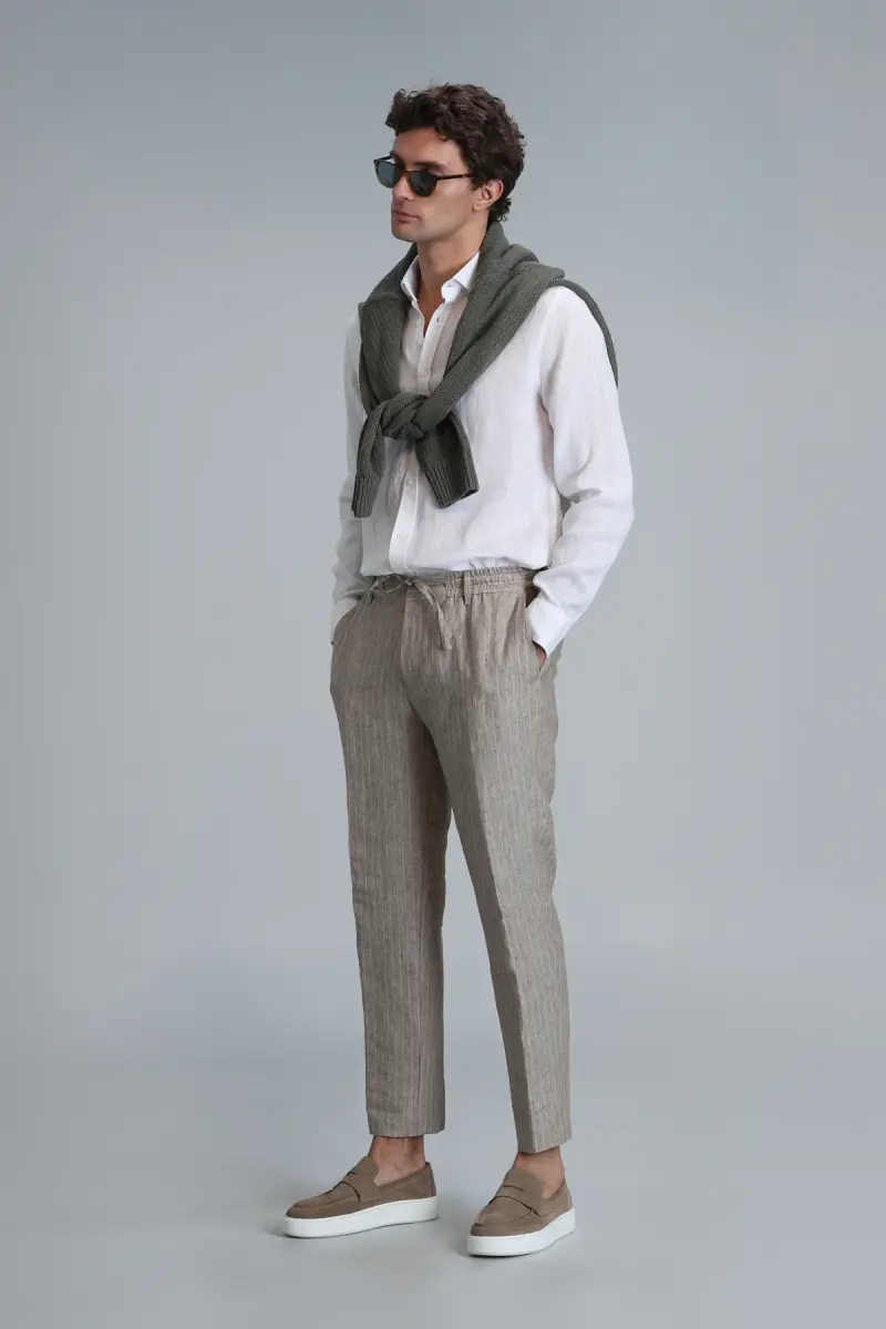 The Mario Smart Men's Chino Pants Tailored Fit Beige is the perfect choice for your everyday style, combining style and comfort. Made from high-quality cotton fabric, these pants provide all-day comfort with their perfect fit and breathable fabric. Whether you're going to the office, meeting friends, or running errands, these pants will make you look stylish and elegant in any situation.