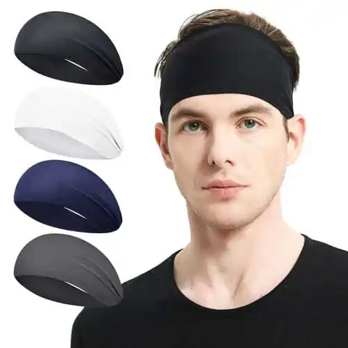 MARKEEP Running Headbands for Men (4 or 6 Pack, Mens Stretchy Headband for Football, Cycling, Basketball, Yoga, Fitness Workout Unisex Quick-Dry Sweatband)