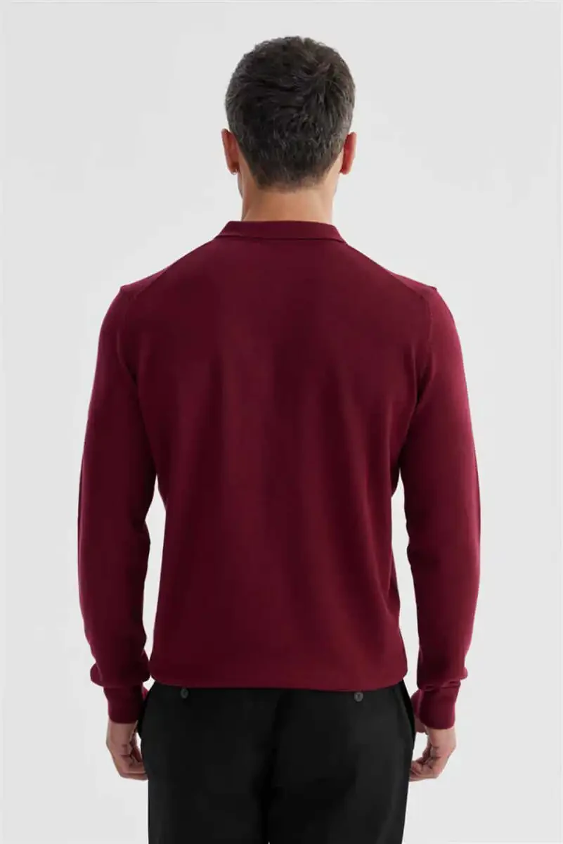 Slim Fit Tricot Sweater, Burgundy Tricot Sweater, Patterned Tricot Sweater, Polo Collar Tricot Sweater