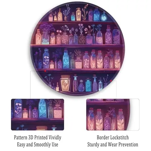 Добавьте волшебства и веселья в свое рабочее пространство с ковриками для мыши Gctriki Round! Этот милый и функциональный коврик для мыши разработан специально для тех, кто любит эстетику ведьм. Очаровательный визуальный образ "Magic Potion Bottle" (Бутылка волшебного зелья) доставит вам удовольствие при каждом использовании и сделает даже обычный офисный день более приятным. Этот коврик для мыши, изготовленный из высококачественных материалов, отличается как эстетичным внешним видом, так и превосходными характеристиками. Независимо от того, используете ли вы его дома, в офисе или в дороге, коврик для мыши Gctriki Round поднимет ваш опыт работы с компьютером на новый уровень.Благодаря ультрагладкой поверхности вы получите безупречный контроль над движениями мыши. Ткань Lycra отлично совместима как с проводными, так и с беспроводными, оптическими и механическими мышами. Независимо от того, какая у вас мышь, она будет плавно скользить по коврику Gctriki и оказывать вам полную поддержку в ваших точных движениях. Играя в игры или выполняя напряженную офисную работу, вы повысите свою производительность благодаря комфорту и точности, которые обеспечивает этот коврик для мыши.Коврик для мыши Gctriki Round не только красиво выглядит, но и предлагает практичное использование. Нескользящее резиновое основание удерживает коврик для мыши на столе, поэтому вам не придется беспокоиться о его скольжении или перемещении даже в самые напряженные моменты. Кроме того, благодаря покрытой поверхности он устойчив к пролитым жидкостям. Если вы случайно пролили напиток, вы можете легко очистить его, просто протерев влажной тканью или бумажным полотенцем.Благодаря прочным прошитым краям коврик для мыши Gctriki Round прослужит долго. Вы можете использовать его в течение длительного времени без износа или распускания по краям. Благодаря компактному и портативному дизайну вы можете легко брать его с собой куда угодно. Этот легкий и складной коврик для мыши диаметром 8,6 дюйма не занимает много места в сумке и будет сопровождать вас в ваших поездках.Коврик для мыши Gctriki Round - отличный вариант подарка не только для себя, но и для своих близких. Это идеальный подарок для женщин, мужчин, девочек, учителей, членов семьи, друзей, коллег и даже ваших начальников. Подарив им полезный и значимый подарок, вы поможете им украсить свое рабочее пространство и сделать работу за компьютером более приятной. Этот милый офисный аксессуар вызовет улыбку на лице каждого пользователя.