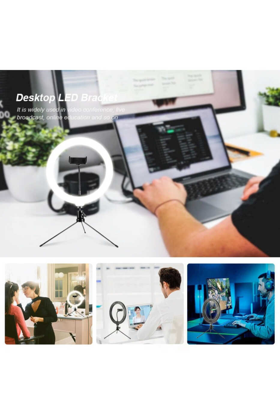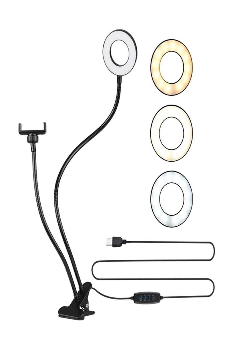 Masa Üstü Telefon Tutucu Youtuber Masa Lambası 3 Renk Işık Şiddeti Ayarlanabilir