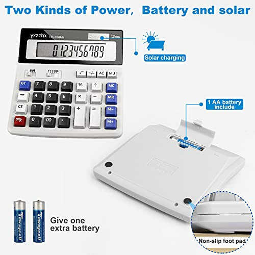 Two-way Power Basic Calculator: Solar and battery, making it convenient to use in any lighting condition. (Provide 2 AA batteries, only 1 needed ). Large 12-Digit LCD Clear Display: Specially modulated pigment for the display screen which improves the clarity of the display screen clearly. 10 Key Calculator Easy-to-Use Big Buttons: Computer keyboard type big keys easy to press with fingers. Portable Design: Designed to sit flat on a desk, countertop, or table for convenient access, this calculator is easy to carry for quick and easy tax calculation Perfect for Business and Personal Use: This paperless calculator is perfect for use in the office, school, or at home. It's ideal for anyone who needs to make quick and accurate calculations, including bank staff, financial workers, and data analysts.