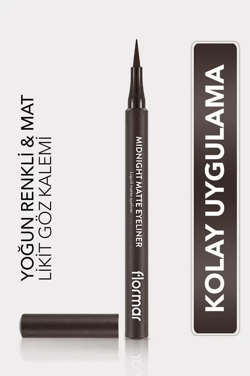 It's time to have captivating eyes with Midnight Matte Eyeliner 002 Brown! Developed with Flormar's expertise, this matte liquid pen eyeliner adds a warm and natural touch to your eye makeup with its brown tone, while allowing you to achieve an impressive and dramatic look. Thanks to its fine-tipped pen design, applying eyeliner is now much easier and more practical. It offers an ideal solution especially for those who have difficulty applying eyeliner. Its flexible tip allows you to draw professional and stylish wings on both eyes. Whether you want a thin and elegant line or a thicker and more defined wing, you can easily achieve the eye makeup of your dreams with Midnight Matte Eyeliner. Its highly pigmented and matte finish formula instantly gives your eyes a slanted and attractive expression. The brown tone is a perfect choice especially for those with warm skin tones and brown eyes. While making your eyes more prominent, it also offers a natural and soft look. Thanks to its long-lasting effect throughout the day, the eyeliner you apply in the morning stays fresh and flawless all day long. Its special formula that does not smudge or spread eliminates the need to refresh your makeup during the day. Whether you use it in your daily makeup or in your makeup for a special event, you will always have a perfect and striking look with Midnight Matte Eyeliner. This eyeliner, which adapts to every makeup style, deepens your gaze by highlighting your eyes. Feel more confident and attractive with Midnight Matte Eyeliner. This product, which will be the indispensable part of your eye makeup, provides you with professional results while providing ease of use. Give your eyes the importance they deserve and make a difference with Midnight Matte Eyeliner!