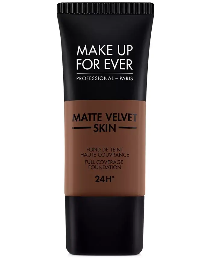 Matte Velvet Skin Full Coverage Foundation is an ideal choice for a smooth and flawless complexion. Its oil-free formula provides long-lasting matte finish throughout the day while preserving the skin's natural radiance. It conceals pores, evens out skin tone, and reduces the appearance of fine lines. Its lightweight texture feels weightless on the skin and is easy to apply. Dermatologically tested. R560 - Chocolate shade is a perfect match for dark and deep skin tones.