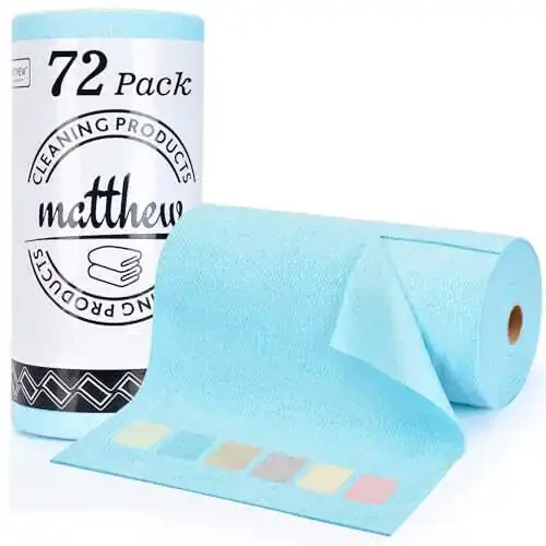 Take cleaning to a new level with the Matthew Microfiber Cleaning Cloth Roll! These 72 reusable 12" x 12" microfiber cloths reduce your paper towel usage, offering both an environmentally friendly and economical solution. The convenient tear-off roll design ensures you always have a clean cloth at hand. The compact roll is easy to store even in small spaces, allowing you to neatly rewind the cloths after use. Made from high-quality 200GSM microfiber material, the cloths are durable and withstand frequent use and washing. With four times the water absorption of cotton cloths, these cloths absorb five times their weight in water, instantly cleaning up grease, dirt, and liquids. They provide much faster and more effective cleaning than sponges and traditional towels. Effortlessly handle cleaning tasks on glass, dishes, cars, and other smooth surfaces. They leave your surfaces spotless and shiny without water spots, streaks, or scratches. Wet cloths dry quickly after wringing. The economical 72-pack is ideal for home and commercial cleaning needs. Perfect for kitchens, floors, household items, tools, glasses, countertops, and cars. Save time and money while protecting the environment! Cleaning is now much easier and more efficient with these high-performance microfiber cloths!
