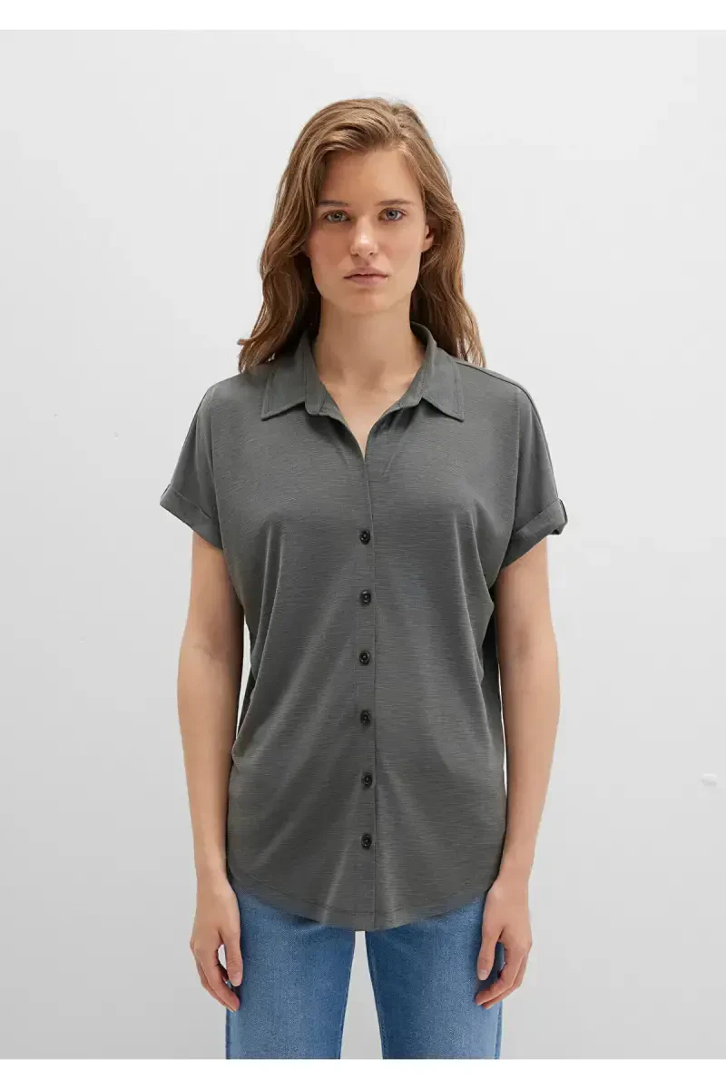 Хлопковая футболка с принтом под горло | Базовая футболка с короткими рукавами