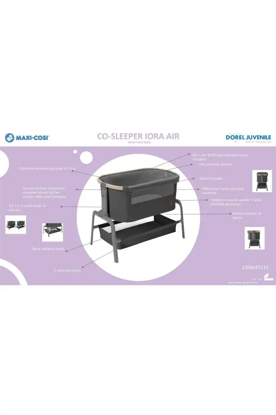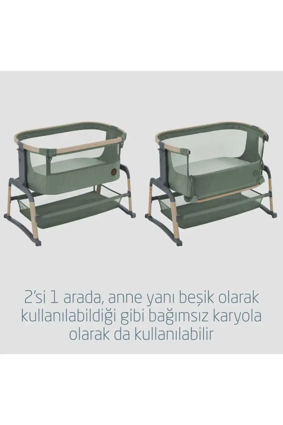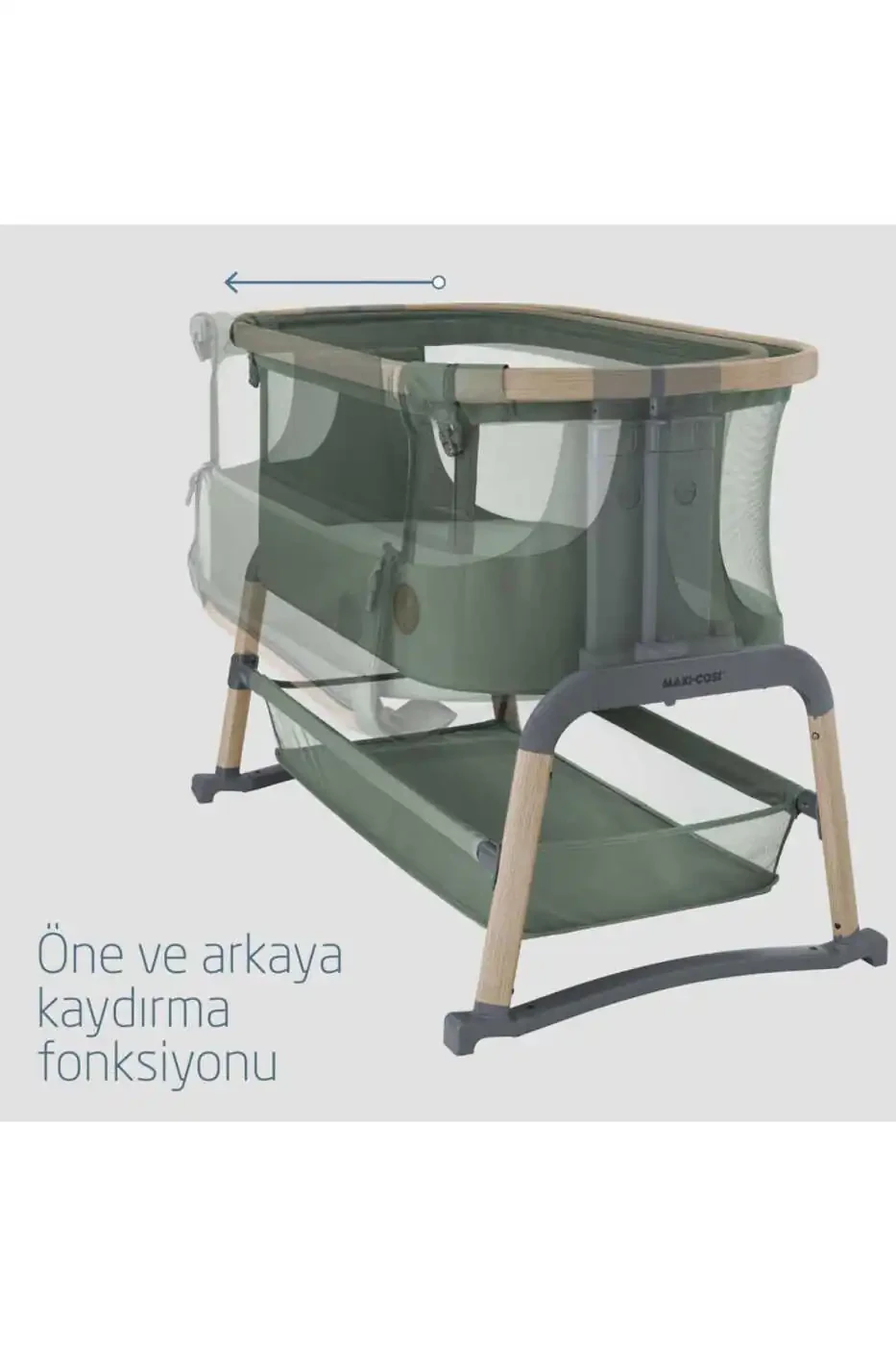 Maxi-Cosi Iora Air Rocking Wood Look Side Bed is designed to offer a comfortable and safe sleep experience for your baby's first months. Suitable from birth up to approximately 6 months (9 kg), this side bed can be easily attached to the parent's bed, allowing you to stay close to your baby throughout the night. Thanks to its highly breathable mesh fabric, your baby's airflow is ensured, and sweating is prevented. The rocking feature helps your baby fall asleep easily, while its stylish wood-look design complements any decor. The height-adjustable feature allows it to adapt to different bed heights.