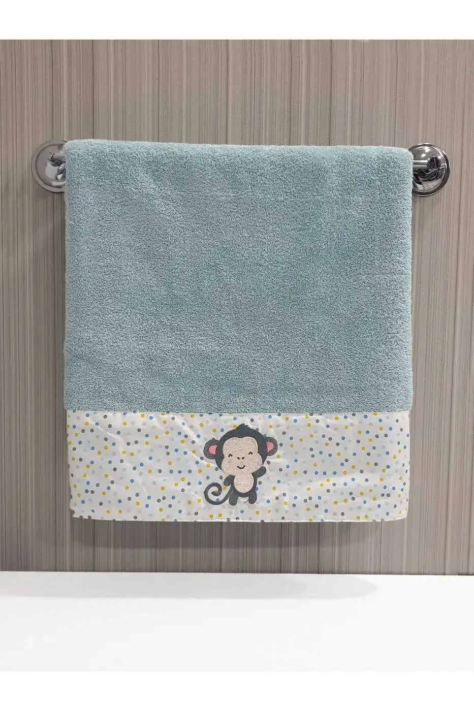 Полотенце для новорожденных с вышитым рисунком обезьяны в одном комплекте 50x90 см, 100% хлопок