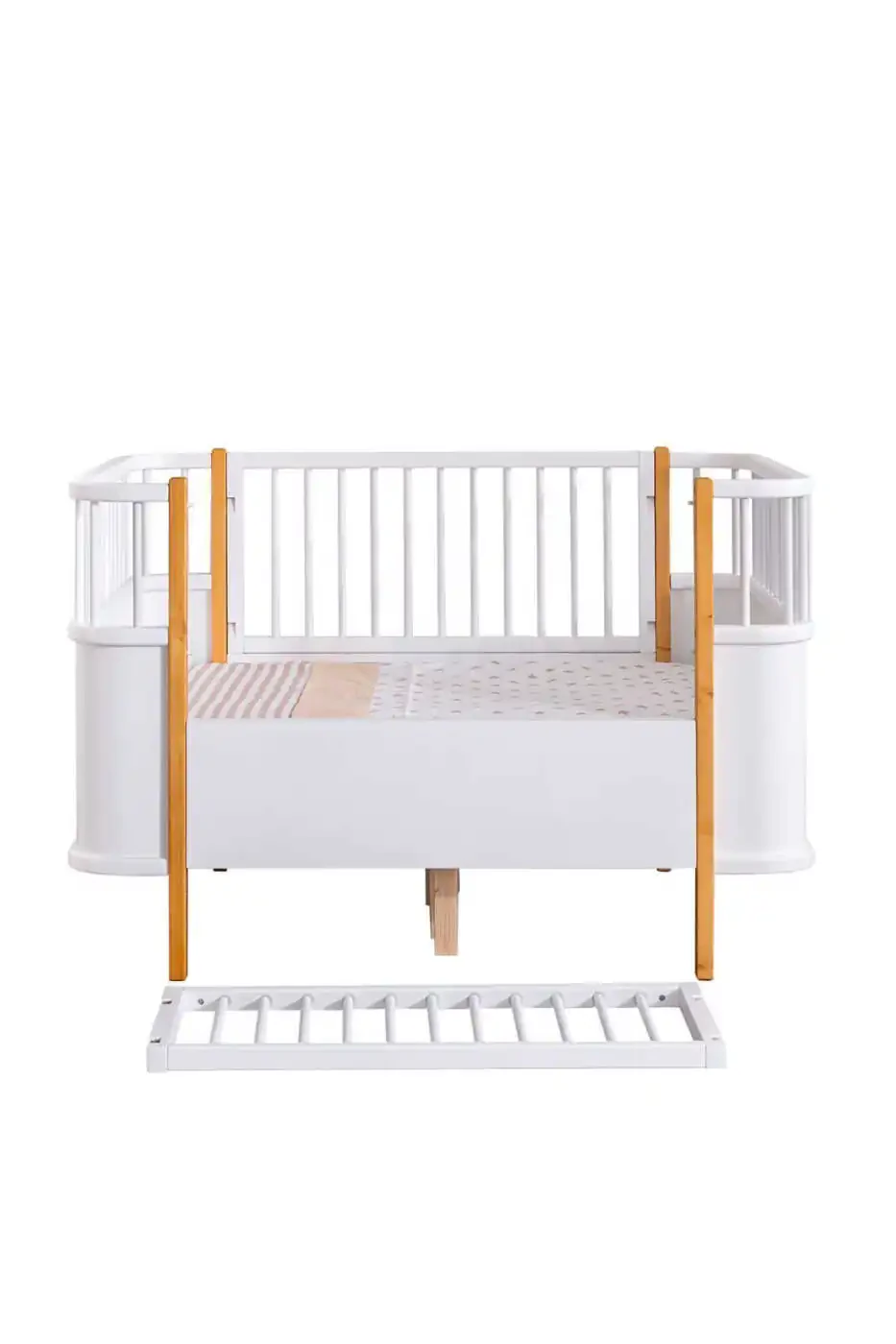 Ebeveynler olarak, bebeklerimizin konforu ve güvenliği her zaman önceliğimizdir. Bu bilinçle tasarlanan Bella Büyüyen Beşik, bebeğinizin ilk günlerinden itibaren güvenli ve rahat bir uyku ortamı sunarken, büyüdükçe de ona eşlik edecek şekilde tasarlanmıştır. Yüksek kaliteli MDF malzemeden üretilen bu beşik, sağlamlığı ve uzun ömürlü kullanımıyla öne çıkar. Bella Büyüyen Beşik, sadece bir beşik değil, aynı zamanda bebeğinizin gelişimine katkıda bulunan bir yatırımdır.Bella Büyüyen Beşik, 90x120 cm iç ölçüleriyle bebeğiniz için geniş ve ferah bir uyku alanı sunar. Bebeğinizin rahatça hareket edebileceği ve huzurla uyuyabileceği bu alan, sağlıklı bir uyku düzeni oluşturmasına yardımcı olur. Beşiğin büyüme özelliği sayesinde, bebeğinizin büyüme evrelerine uyum sağlayarak uzun yıllar boyunca kullanılabilir. Beşik, karyolaya dönüştürülebilir özelliği sayesinde, bebeğinizin büyüdükçe ihtiyaç duyacağı daha geniş bir yatak alanına kolayca adapte olur. Bu özellik, ebeveynlere ek bir maliyet ve zahmetten kurtarır.Bella Büyüyen Beşik'in şık ve modern tasarımı, her türlü bebek odası dekorasyonuna kolayca uyum sağlar. Beşiğin zarif hatları ve doğal renkleri, bebeğinizin odasına sıcak ve davetkar bir atmosfer katar. Beşiğin güvenliği de en üst düzeyde tutulmuştur. Kenarları yuvarlatılmış ve sivri köşelerden arındırılmıştır. Bebeğinizin güvenliği için toksik olmayan boyalar kullanılmıştır. Beşiğin montajı kolay ve pratiktir. Gerekli tüm parçalar ve detaylı montaj talimatları ürünle birlikte gelir.Bella Büyüyen Beşik, bebeğinizin sağlığı ve güvenliği düşünülerek tasarlanmış, uzun ömürlü ve kullanışlı bir üründür. Bebeğinizin büyüme sürecinde ona eşlik edecek bu beşik, ebeveynler için de büyük bir kolaylık ve memnuniyet sağlar. Bella Büyüyen Beşik ile bebeğinizin huzurlu ve güvenli bir uyku deneyimi yaşamasını sağlayabilirsiniz.